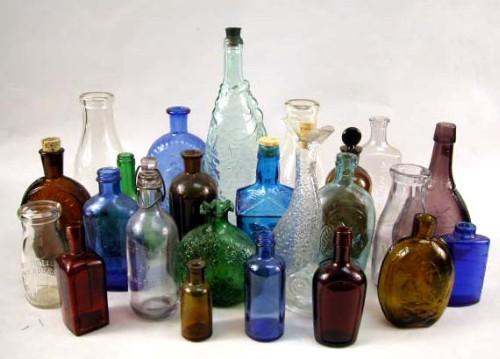 A MISCELLANEOUS GROUP OF GLASSWARE; Comprising colorless and colored bottles and flasks (31 pieces) Height from 4" to 14 1/2"