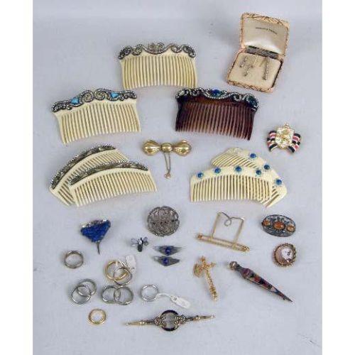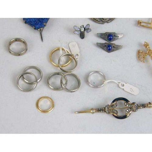 A MISCELLANEOUS GROUP OF ITEMS<BR><BR>Including gold wedding bands, brooches and hair combs