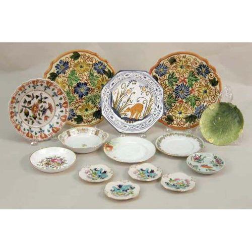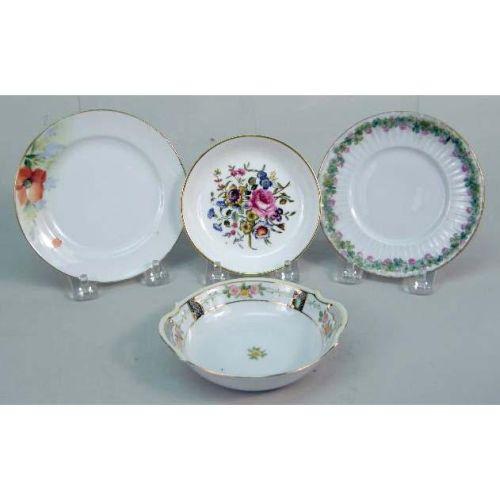 A MISCELLANEOUS GROUP OF POLYCHROME AND PARCEL-GILT DECORATED PORCELAIN PLATES<BR><BR>Including, Nippon, Worcester, and German examples, 14 pieces