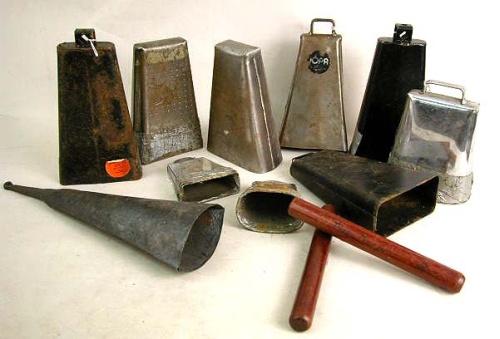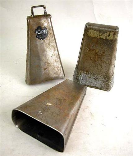 A MISCELLANEOUS GROUP OF TEN PERCUSSION BELLS Various degrees of condition, together with two sticks