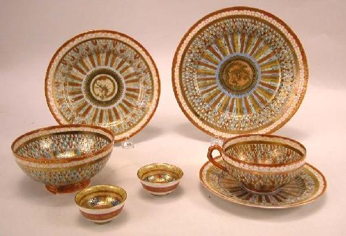 A MISCELLANEOUS GROUP OF "THOUSAND FACES" PORCELAIN; Japanese, comprising tea cups, rice bowls, sauce bowls, saucers, small plates, medium plates and large plates, (minor losses), Approximately 57 pieces