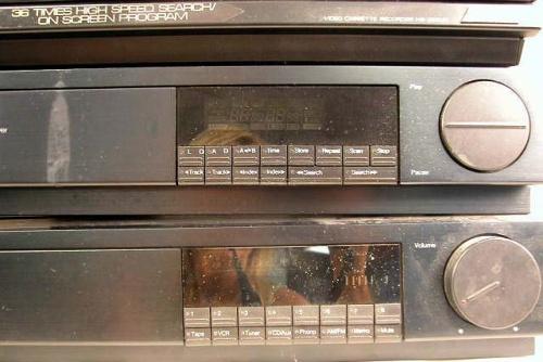A MITSUBISHI VCR/AR CD PLAYER AND RECEIVER Together with a pair of tower speakers