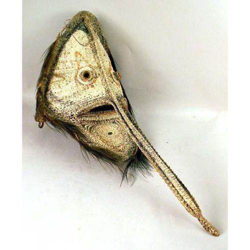 A MIXED MEDIA CEREMONIAL MASK<BR><BR>17"h