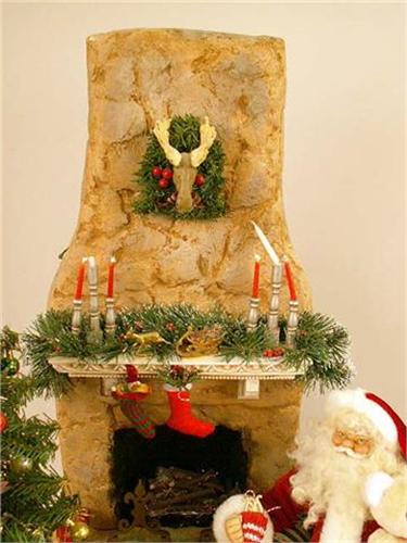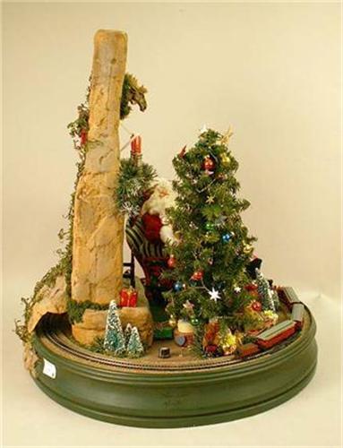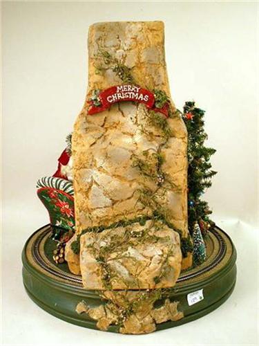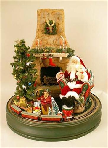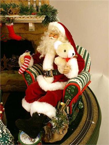 Signed "Lynn West." Depicting Santa seated next to a fireplace, wear, 22"dia. x 24"h