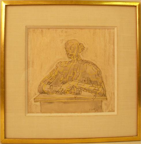 Titled "Seated Woman," bears signature lr (Henry) Moore (1989-1986), dated `48, the verso taped with a receipt from the New Jersey State Museum from being included in the exhibition "Festival 72 - New Jersey Collectors (Prints, Drawings, etc.)," August 11 - September 24, 1972. Sightline 8 /34"h x 9 1/4"w. Provenance: Spook Farm, NJ.