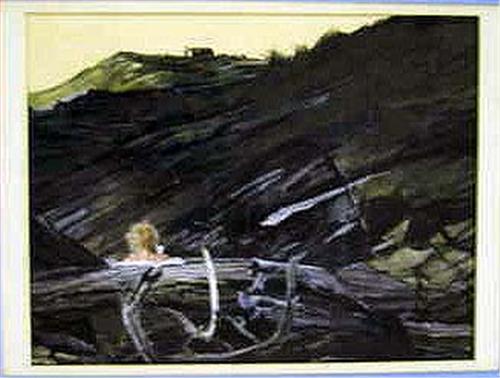 A MIXED MEDIA ON PAPER; Depicting young maiden sitting in stream by hillside, signed LR H. Reynolds Thomas 14"h x 11"w