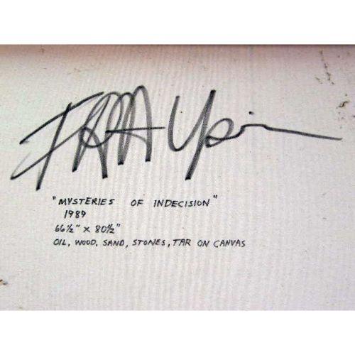 A MIXED MEDIA<BR><BR>Mysteries of Indecision bears partially legible signature on verso, title and date, 1989, 5`6 1/2"h x 6`8 1/2"w