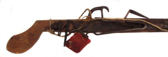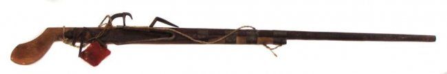 With hardwood stock and native mechanism. Chinese trade barrel. Late 19th century.Worn.Overall length 69.4 cm.