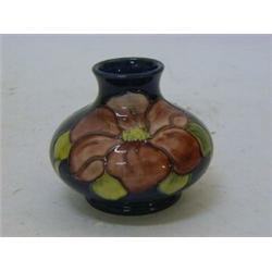 A MOORCROFT SQUAT VASE, tube-lined floral pattern, paper label, height 8cm 30-50...