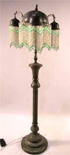 A MOORISH STYLE PIERCED BRASS FLOOR LAMP; With tassels and outset lights 5'3"h