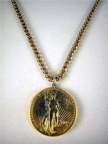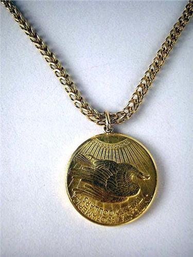 A MORGAN 1924 $20 COIN REPRODUCTION Suspende from a gold link chain, apx. 46.1 dwt.