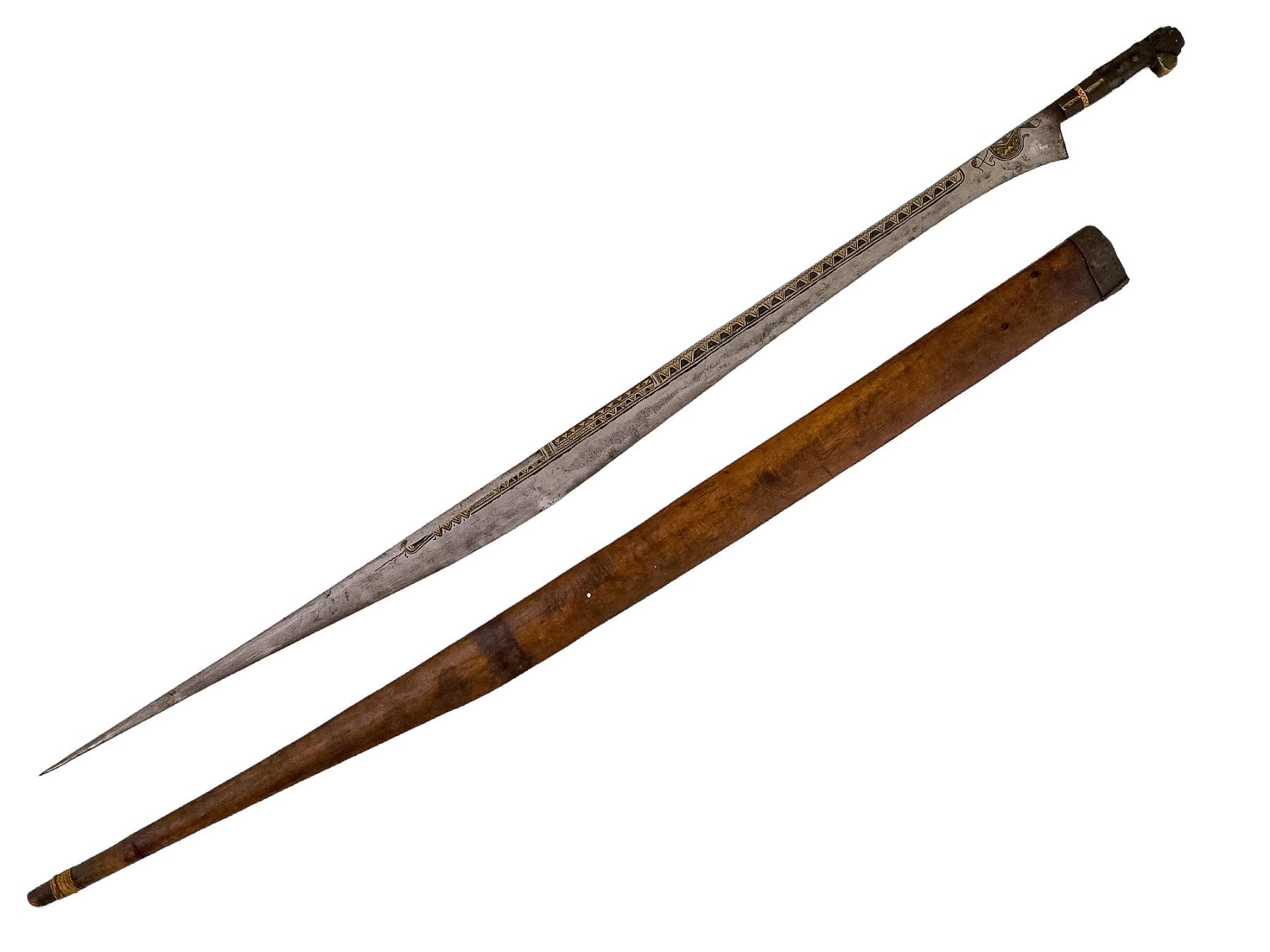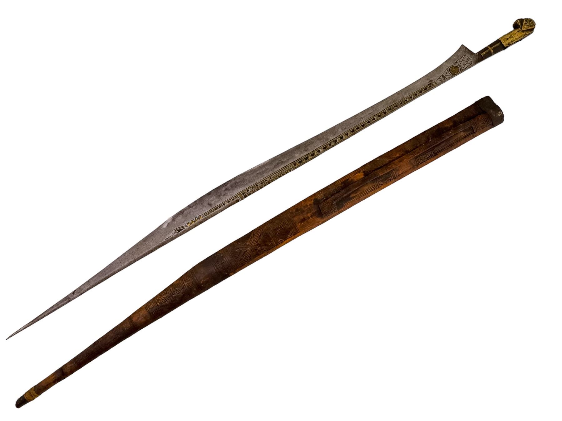 A MOROCCAN FLYSSA SWORD WITH ORIGINAL WOODEN SCABBARD, 19 C.