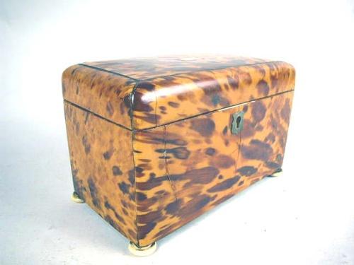 A MOTHER-OF-PEARL INLAID TORTOISESHELL TEA CADDY;