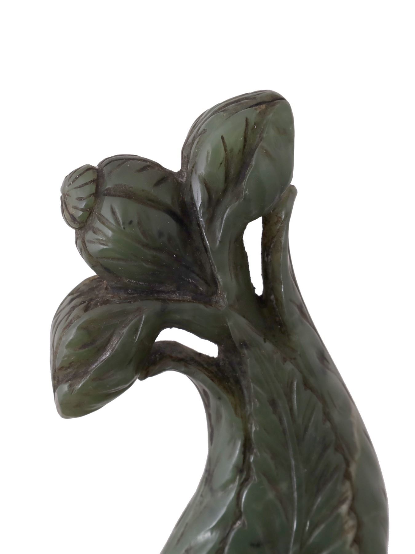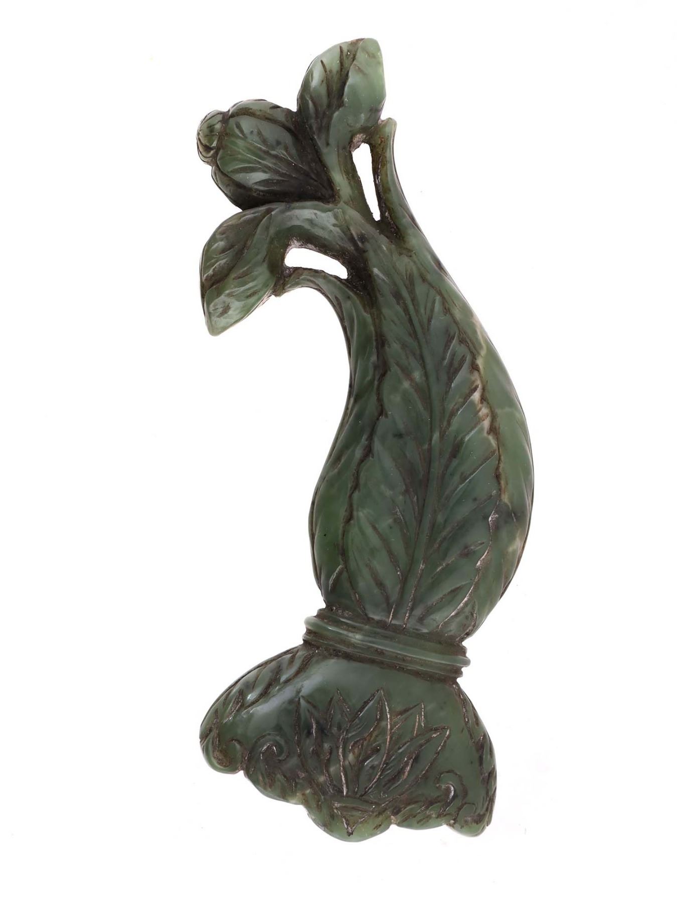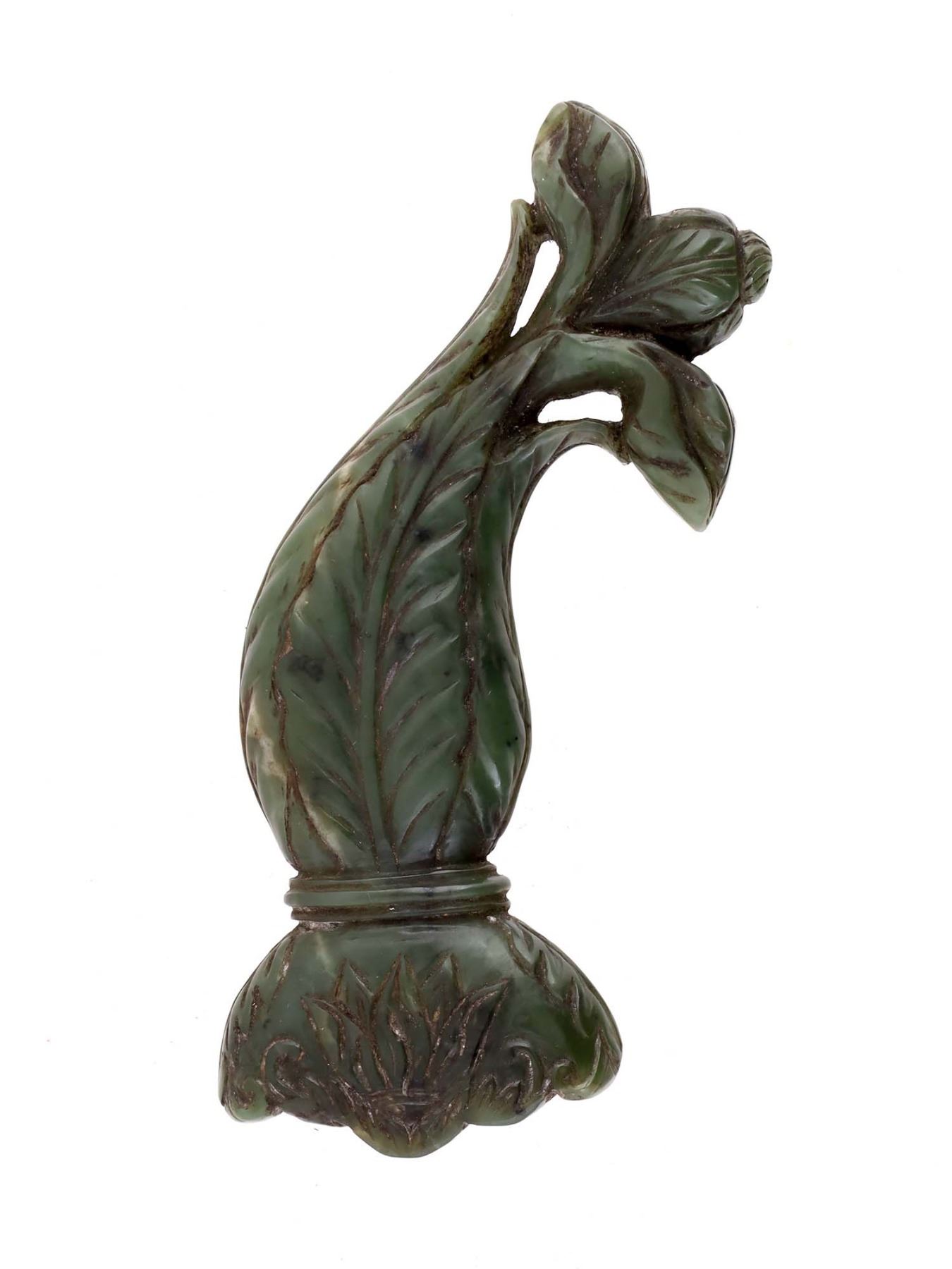 A green khanjar dagger dark-green jade hilt with a lotus bud on the pommel, carved with two symmetrical flower leaves on each side.