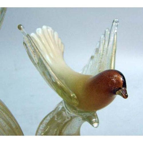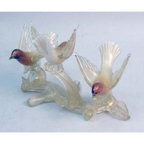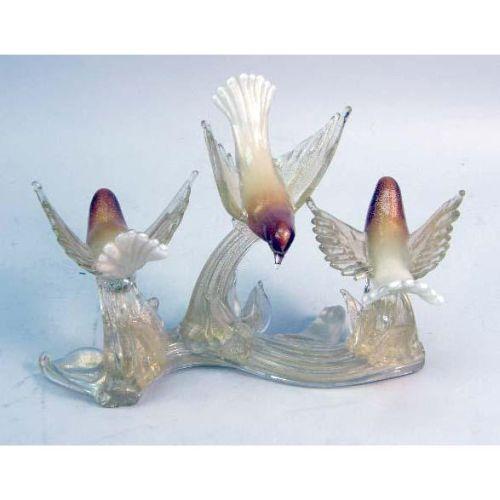 A MURANO GLASS FIGURAL GROUP OF BIRDS<BR><BR>7 1/2"h x 10"w