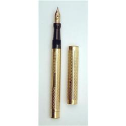 A Mabie Todd & Co Swan gold plated self-filler with chequer panels and no.2 nib, 1920's (see illustration) £70-100