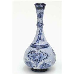 A Macintyre Moorcroft Florian ware vase, circa 1902, painted with Cornflower pattern in blue shades with white tubed scrolls, incised initials W.M. del. printed Florian mark and painted pattern no. M743 (neck-rim restored) 11ins high £1,000-1,200