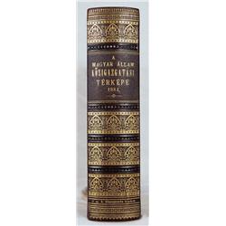 Hungary's administrative map from 1884. Colour lithograph made of 12 segments. In original wooden box imitating book binding, gilt spine.