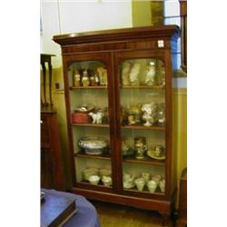 A Mahogany Bookcase, the moulded cornice above a pair of glazed doors enclosing shelves, on a later stand with cabriole legs (upper section of a Victorian bookcase on cupboard) 109 cm £30 - 50