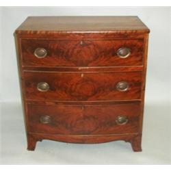 A Mahogany bow front chest of three long drawers c1850, 30" wide....