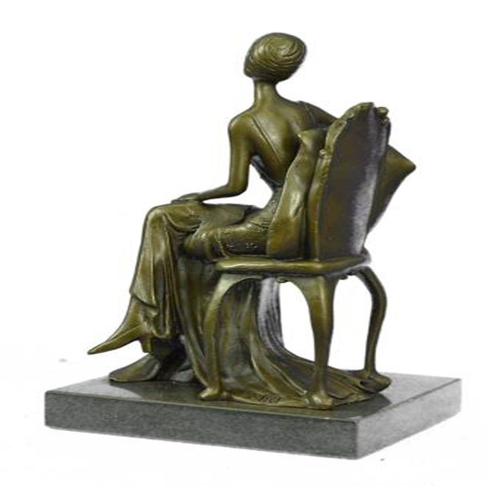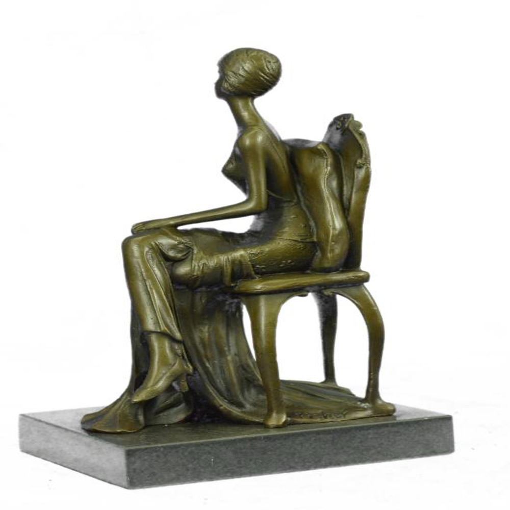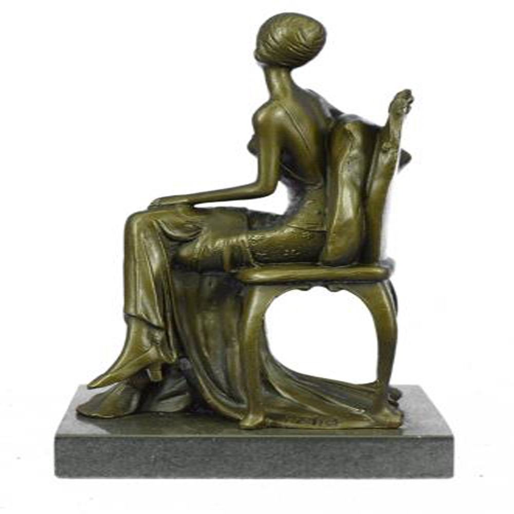 They are inspired by everyday experiences, and appear to have been captured right in motion. The many lovely details of the sexy women depicting typical of the Art Deco style, even though some features such as modern and futuristic structures seem to be missing. Without sticking to a particular theme, which makes each of his works individual and special. This Sculpture was casted using the ancient Lost Wax Method using two tone brown patina and mounted atop a marble base. Bronze Dimensions with Marble Base: Height 10 X Width 6 inches. Weight: 7 LBS.