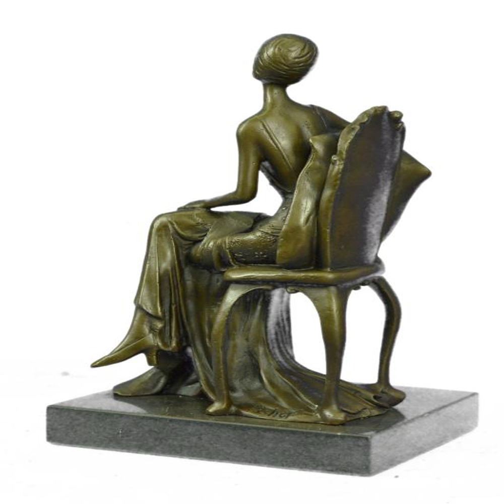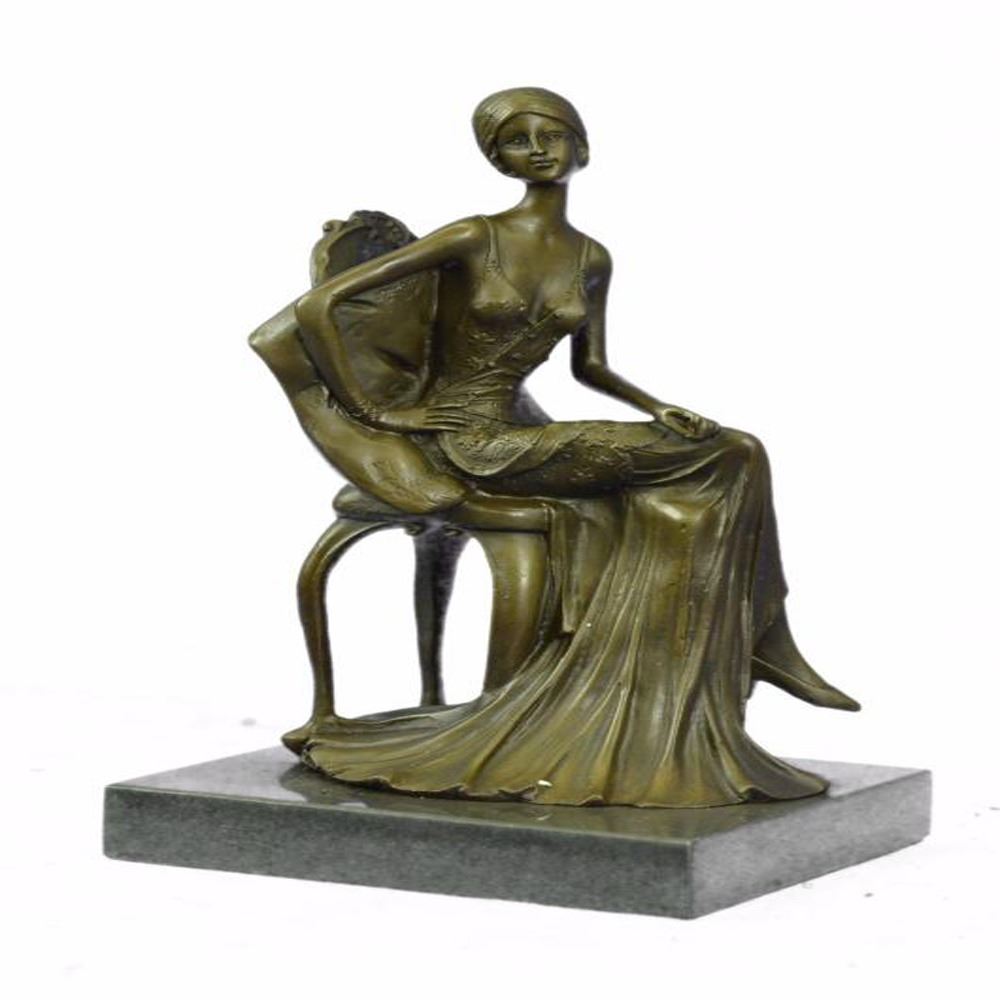 They are inspired by everyday experiences and appear to have been captured right in motion. The many lovely details of the sexy women depicting typical of the Art Deco style, even though some features such as modern and futuristic structures seem to be missing. Without sticking to a particular theme, which makes each of his works individual and special. This Sculpture was cast using the ancient Lost Wax Method using a two-tone brown patina and mounted atop a marble base. Dimensions: Height 10 X Width 6 inches. Weight: 7 LBS.