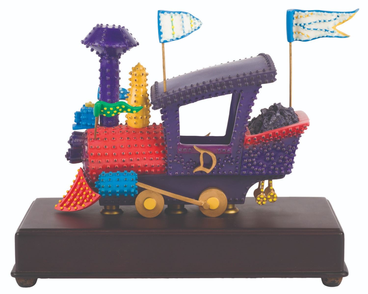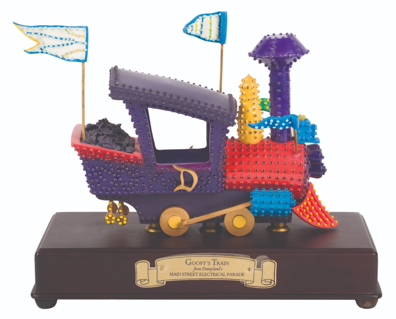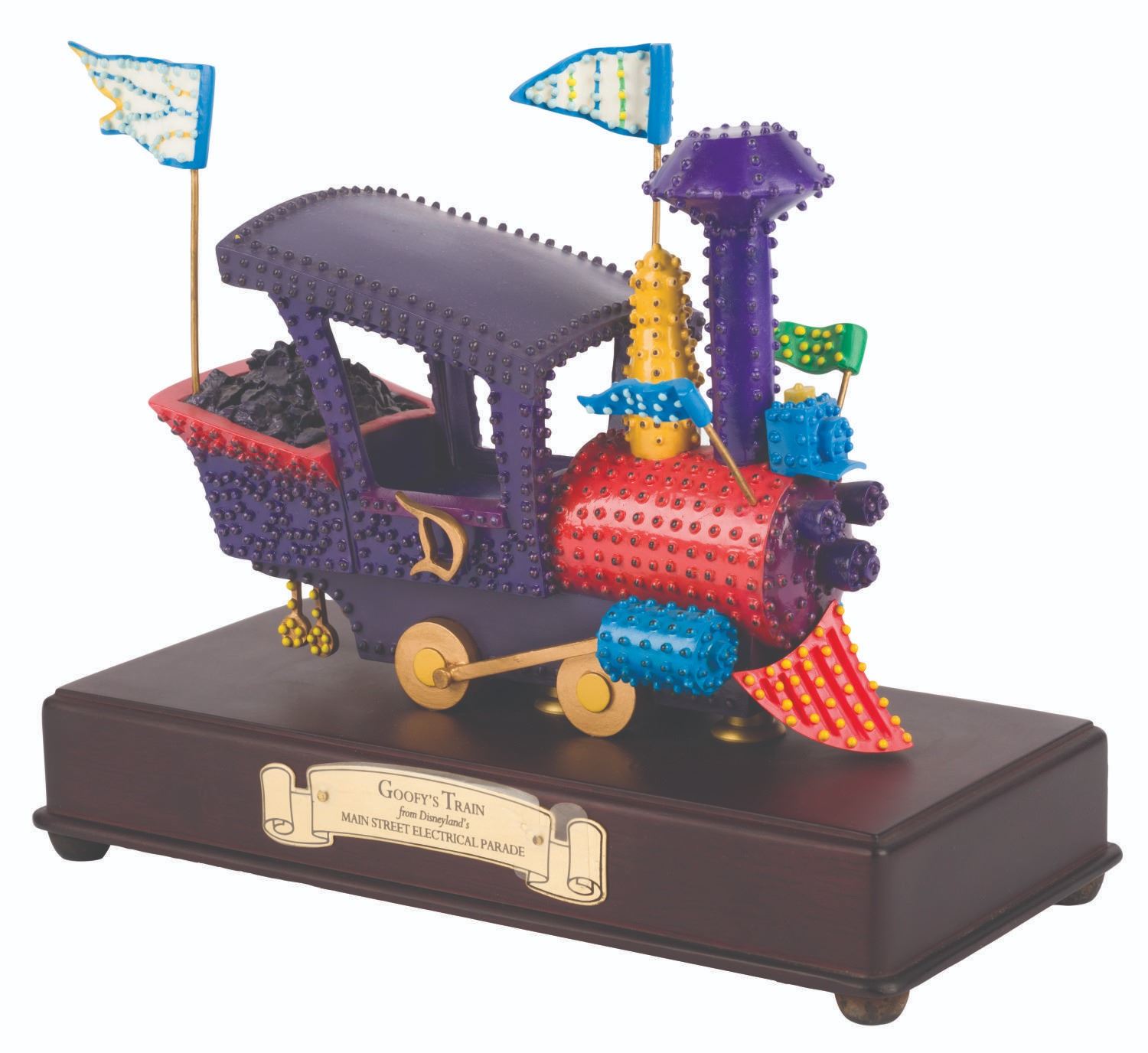 (Disneyland, 1998) A Main Street Electrical Parade Goofy's Train figure from the Walt Disney Classics Collection. Designed by artist Larry Nikolai, this highly detailed cast resin figure is hand painted, accented by colored lights which illuminate in alternating patterns within the figure, and affixed to a wooden display base. Measuring 6.5"x8.25"x4", the train is in very fine, as-new, working condition with COA, packaging, and box.