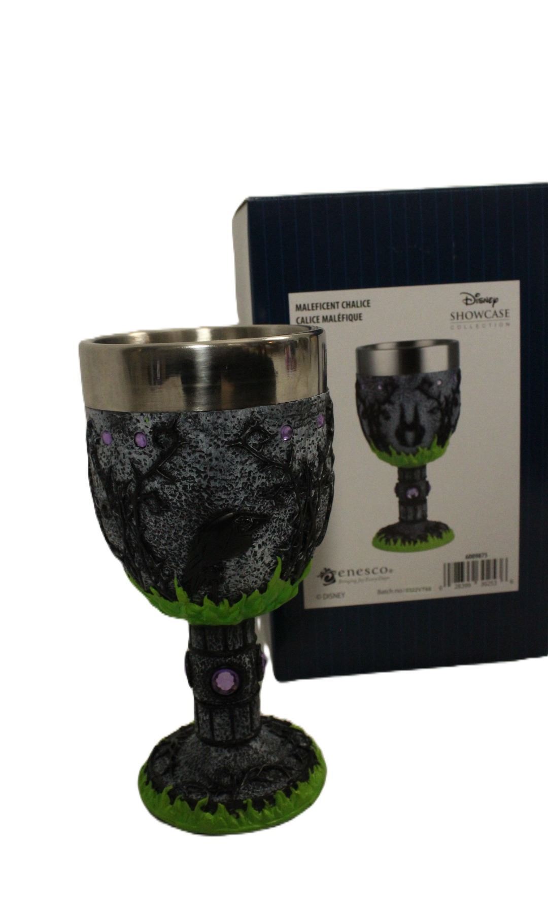 (Enesco) This magnificent Disney Showcase Maleficent chalice is inspired by Walt Disney's 1959 animated classic, Sleeping Beauty. With dazzling detail and creative draftsmanship, this unique collectible highlights the magic and majesty of the Mistress of Evil. It is in like new condition with original box and packaging.