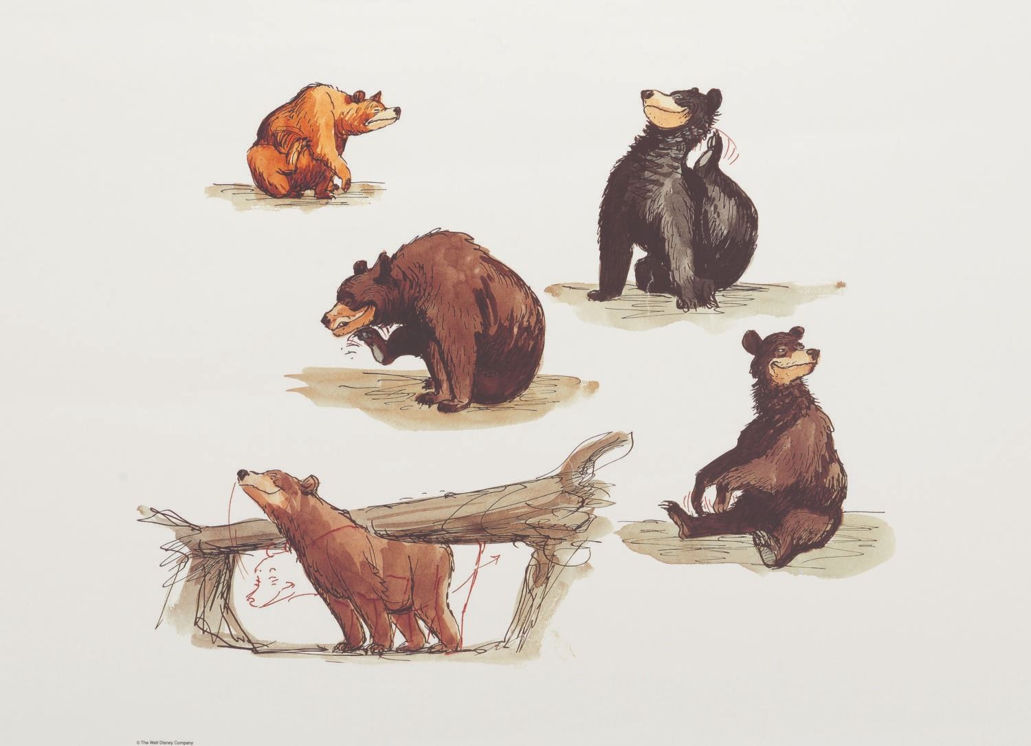 (Disneyland, 1990s) A large print of Marc Davis concepts for the residents of Bear Country from Mine Train Through Nature's Wonderland at Disneyland. Measuring 20" x 26", the print is in good condition with creasing and edge wear.