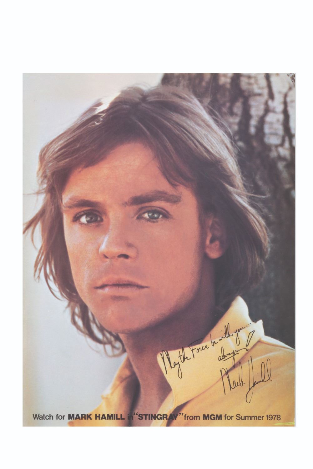 (MGM, 1978) A promotional print of Mark Hamill from "Corvette Summer" with a facsimile signature. This was Hamill's first project released after the first "Star Wars" film. Measuring 8.5" x 11" the print is in fine condition.