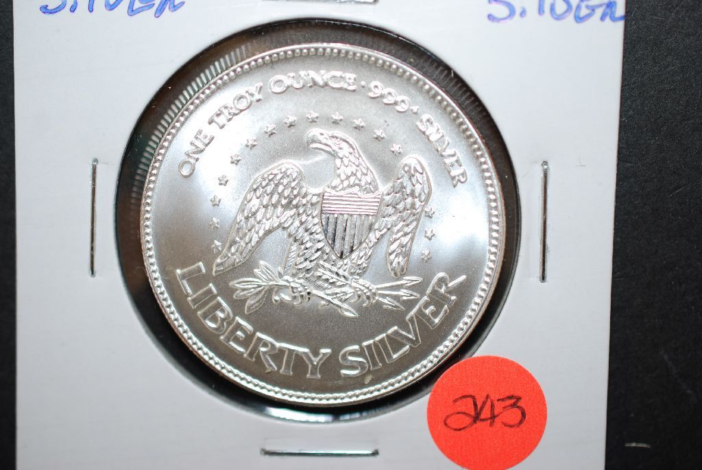 A-Mark Liberty Silver Round; .999 Silver 1 Oz.; EST. $40-60