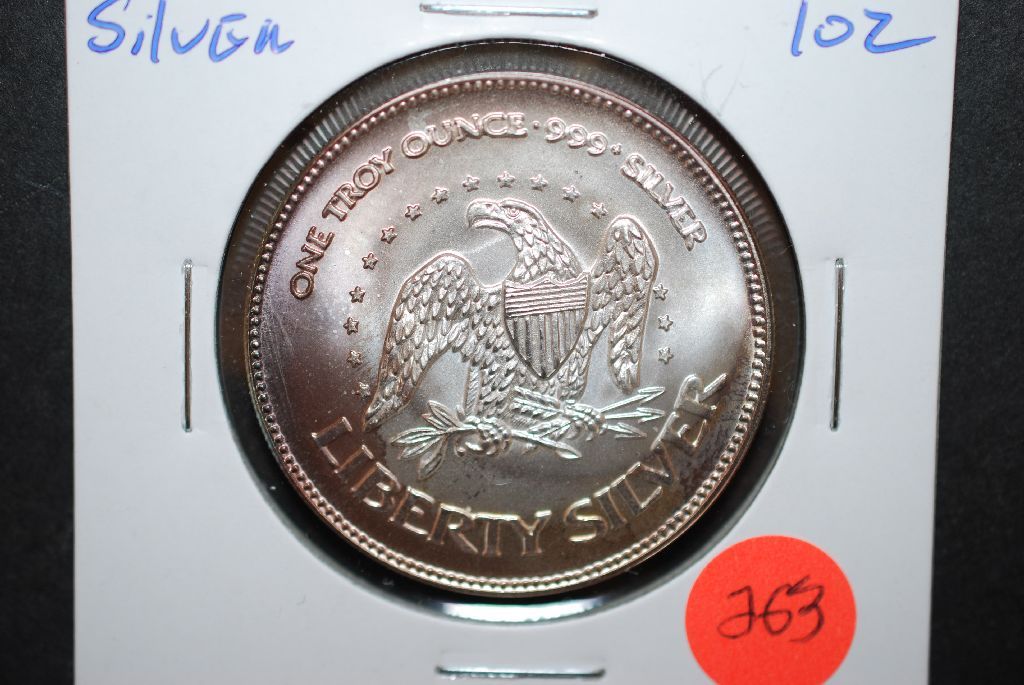 A-Mark Liberty Silver Round; .999 Silver 1 Oz.; EST. $40-60