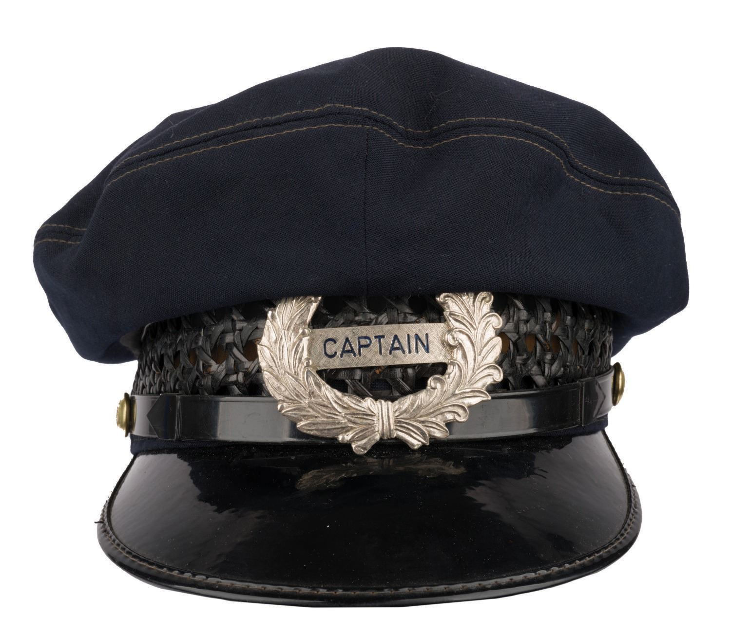 (Disneyland, 1970s/80s) A hat and badge worn by the Captain of the Mark Twain at Disneyland. Measuring a size 7.5" the hat displays in very good condition, exhibiting the slightest wear from park use and age.
