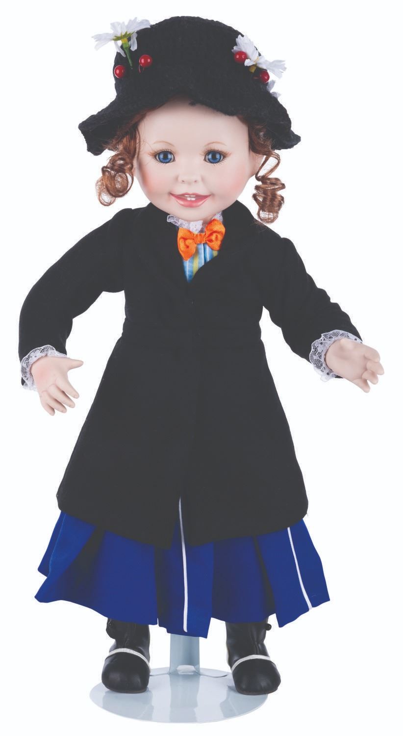 (Disney, 2006) A Mary Poppins doll by Marie Osmond, including a carpet bag, umbrella, flower hat, a scarf, with a display stand, and the original box. Numbered 30/750, Mary comes with a certificate of Authenticity and an "M" doll bracelet. Standing 17.5" tall, the doll is in fine condition.