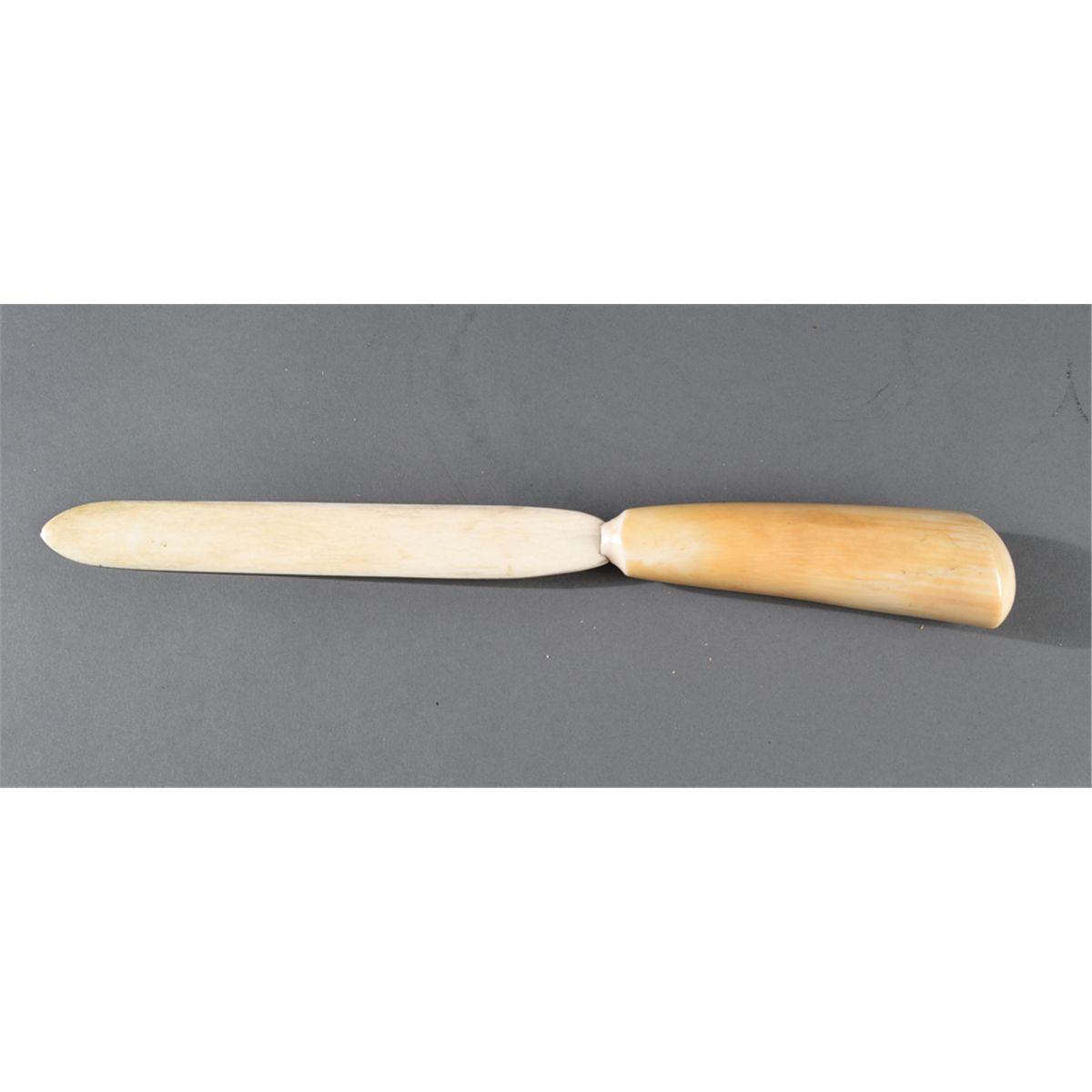A massive carved page turner in two pieces, probably continental. 13.5" L, and weighing 229 grams. Circa late 19th/early 20th century. Private collection Holly, MI.