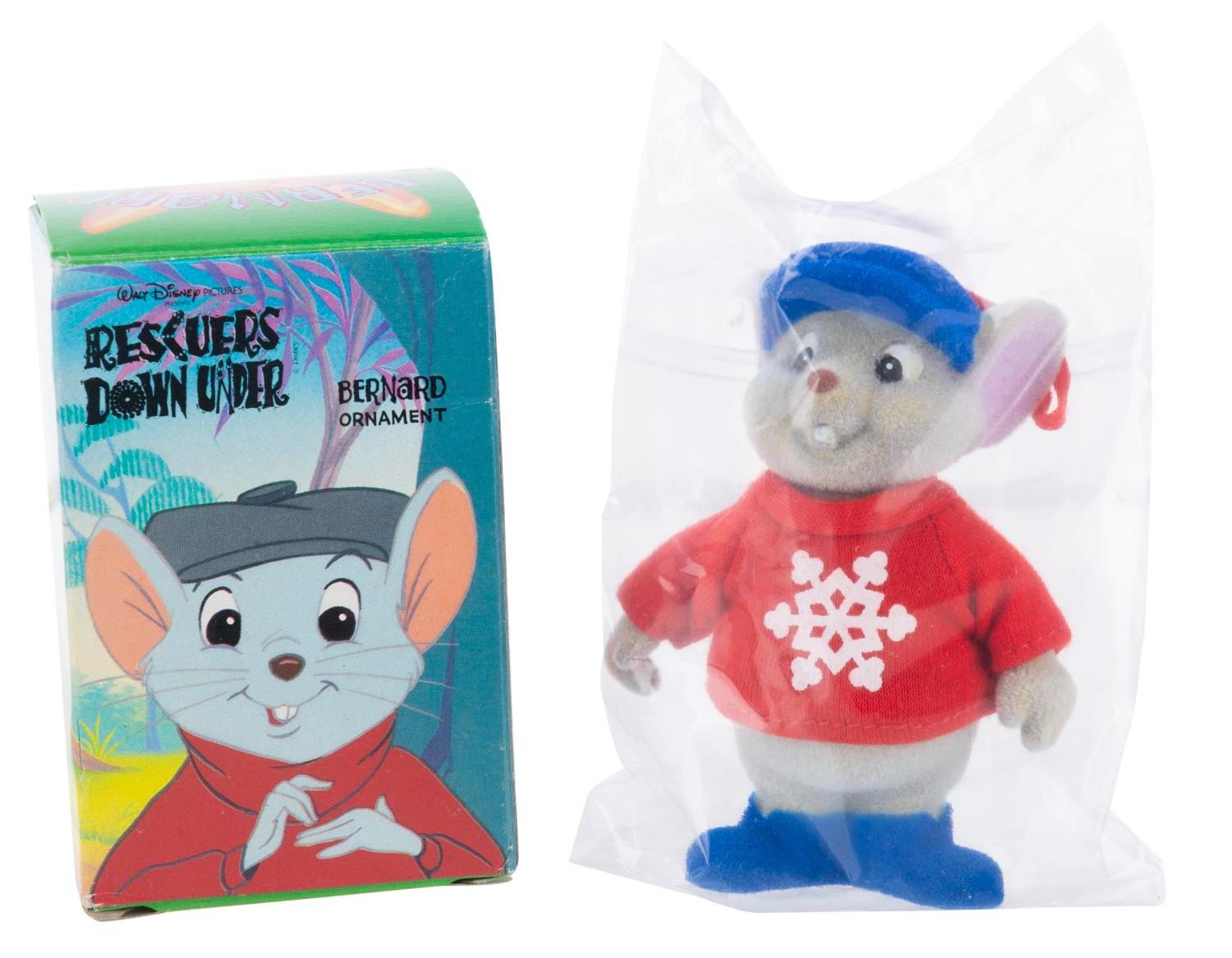(McDonald’s, 1990) A flocked ornament of Bernard from “The Rescuers Down Under” released with McDonald’s Happy Meals. Measuring 3.5” tall and sealed in its original bag, the ornament is in fine condition. The original box displays in good condition with light wear and creasing.