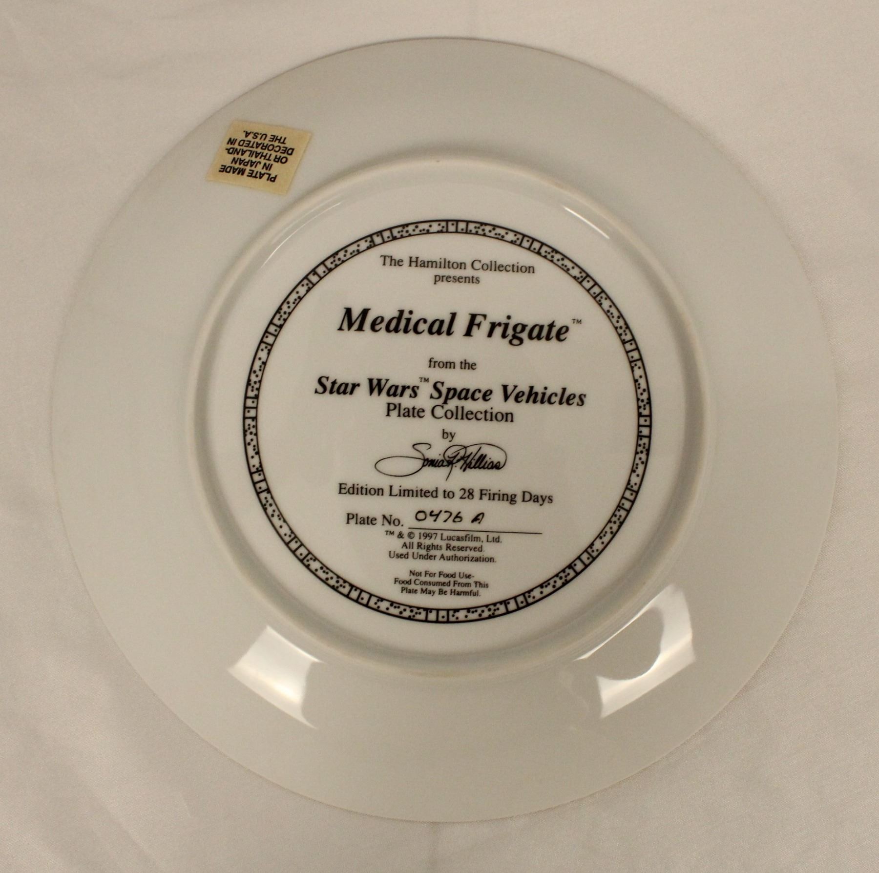 (The Hamilton Collection, 1996) This is a Medical Frigate Collector Plate from the Star Wars Space Vehicles Collection. It is individually numbered as plate 0476 A.