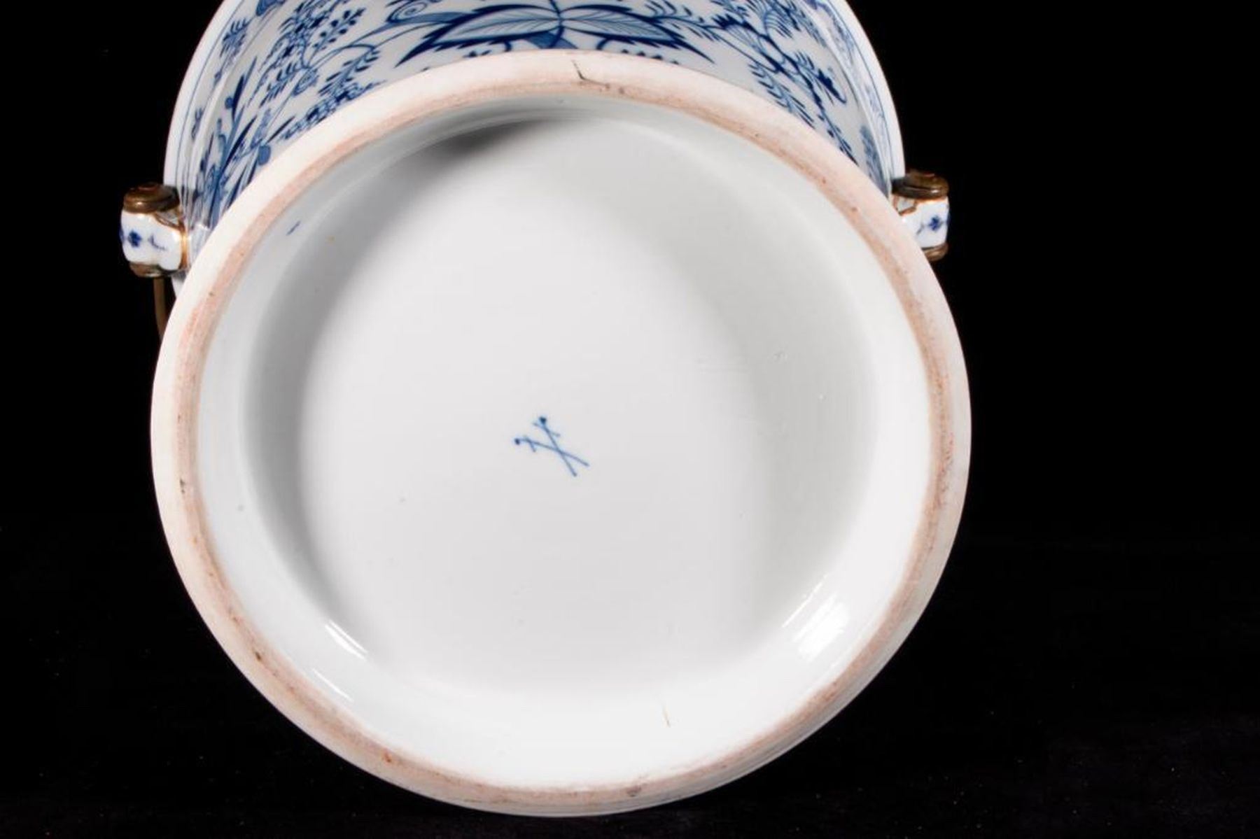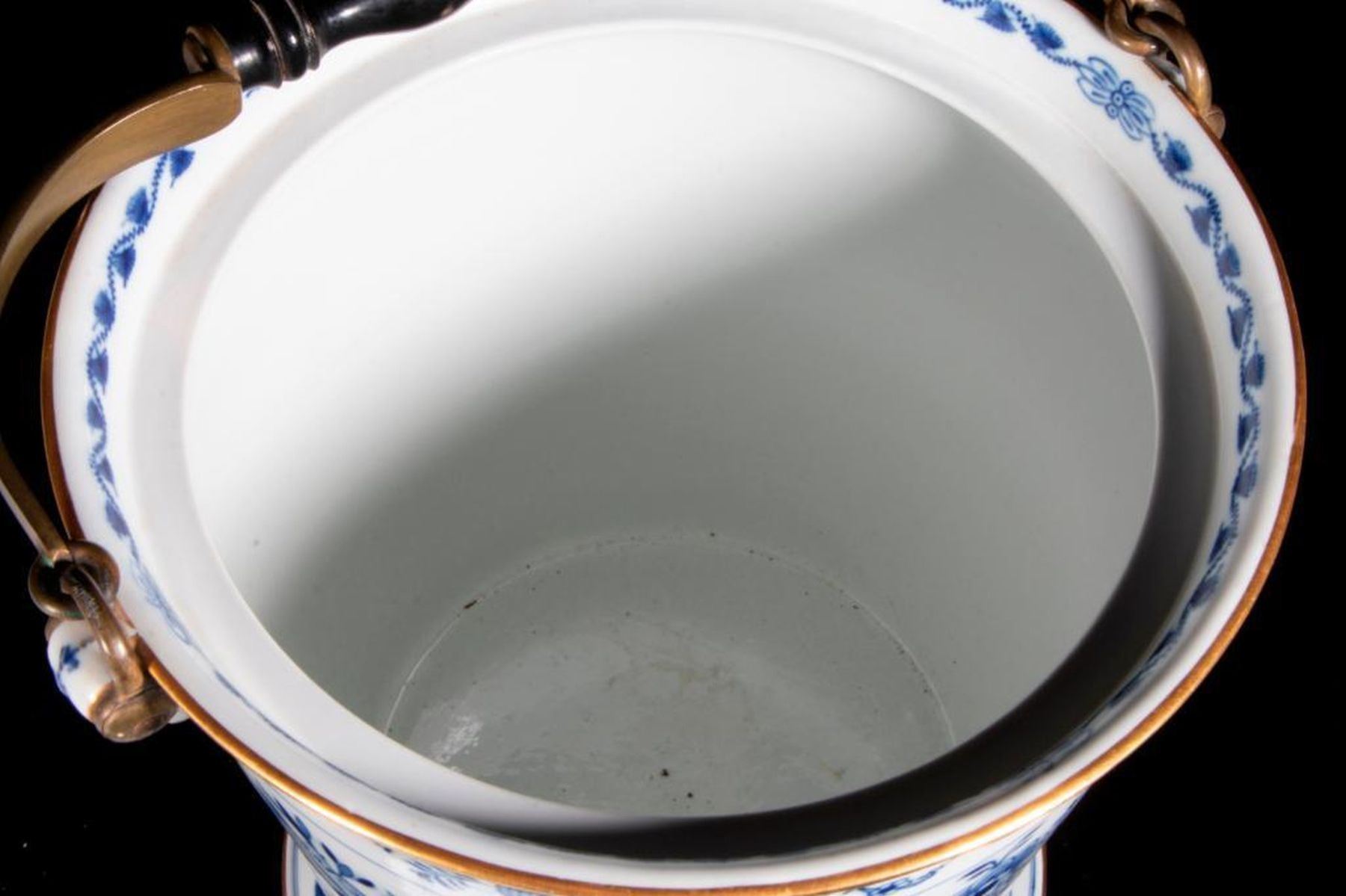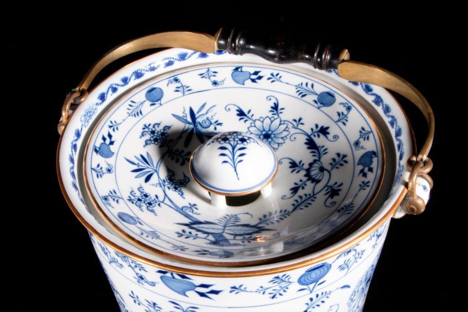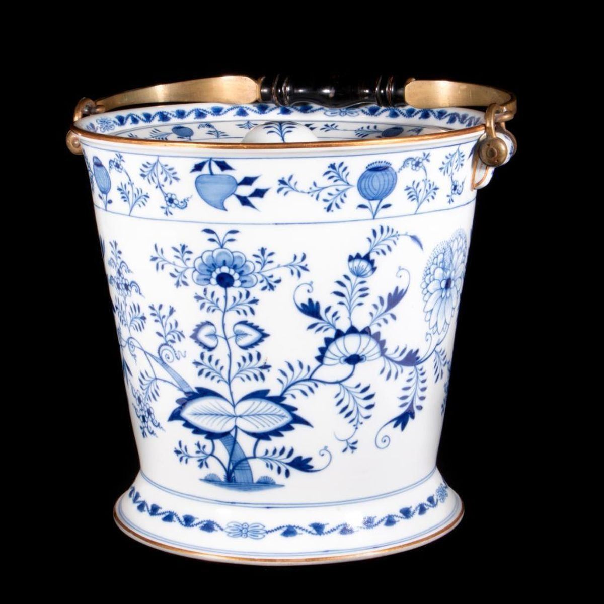 A large late 19th / early 20th century Meissen blue onion pattern porcelain ice bucket measuring 16 inches high (including handle) and 11 1/2 inches diameter.