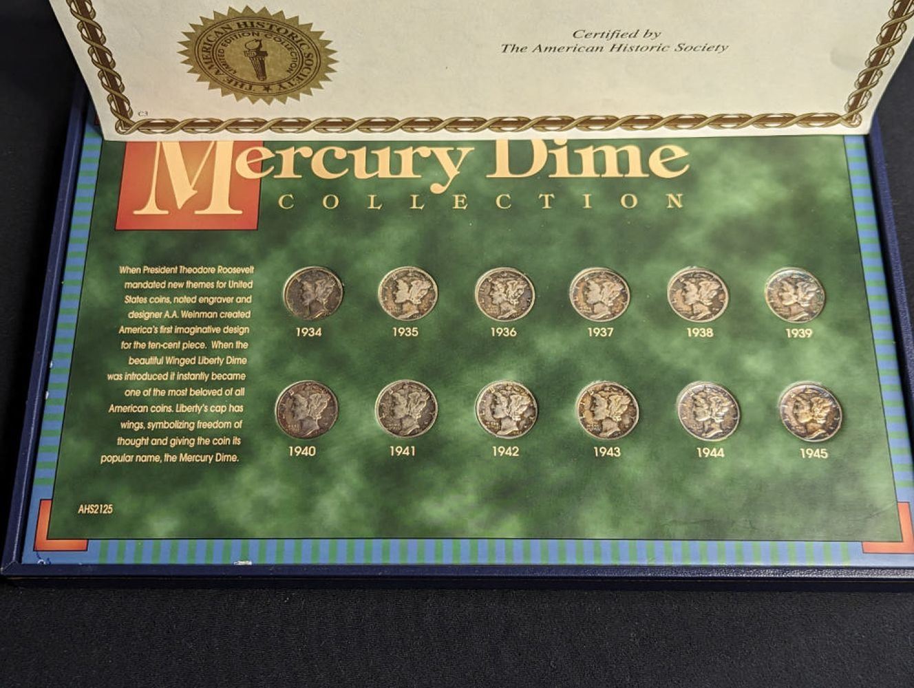A Mercury Dime 12 Coins set Featuring A Mercury Dime from 1934 to 1945. WOW