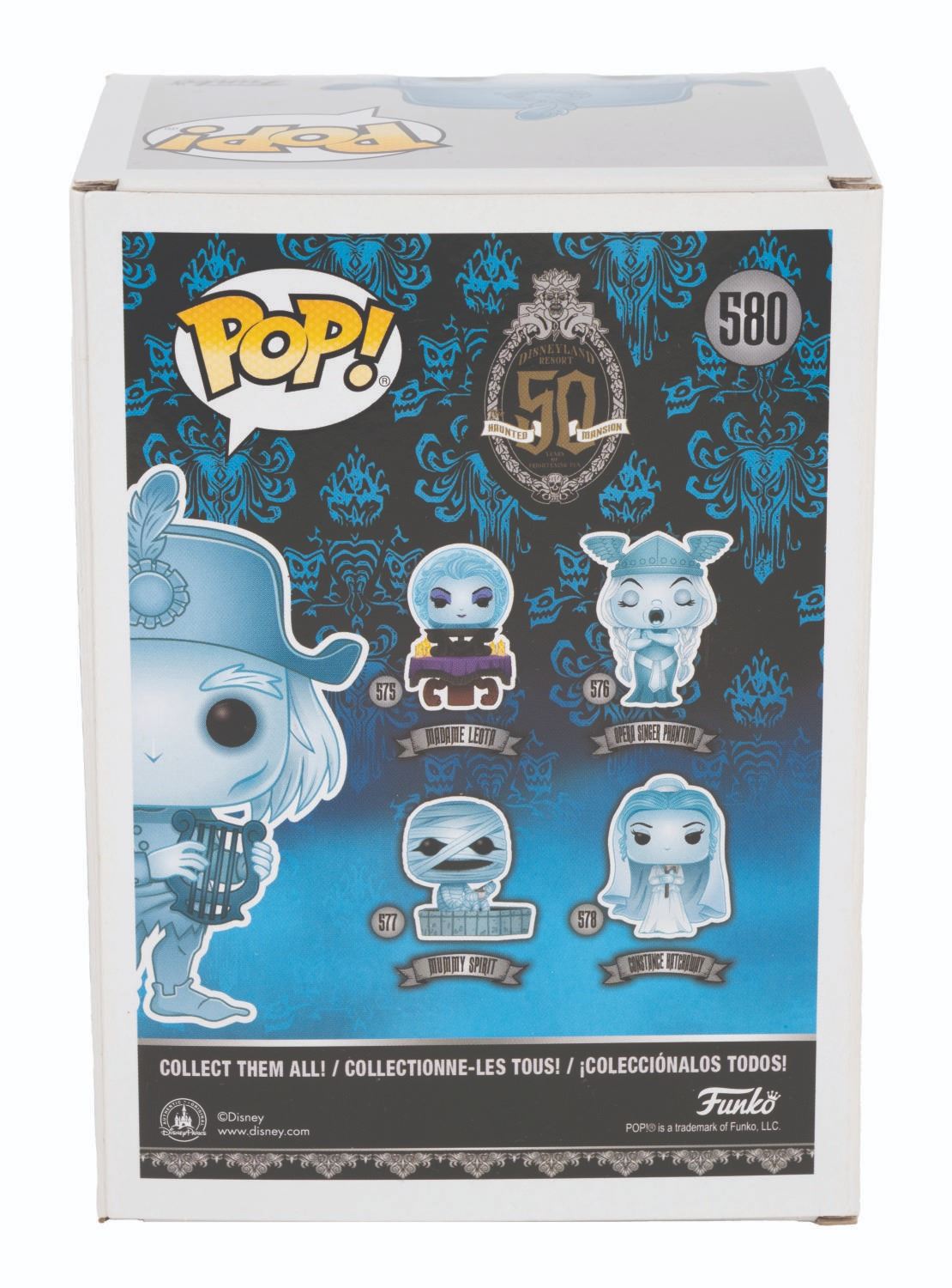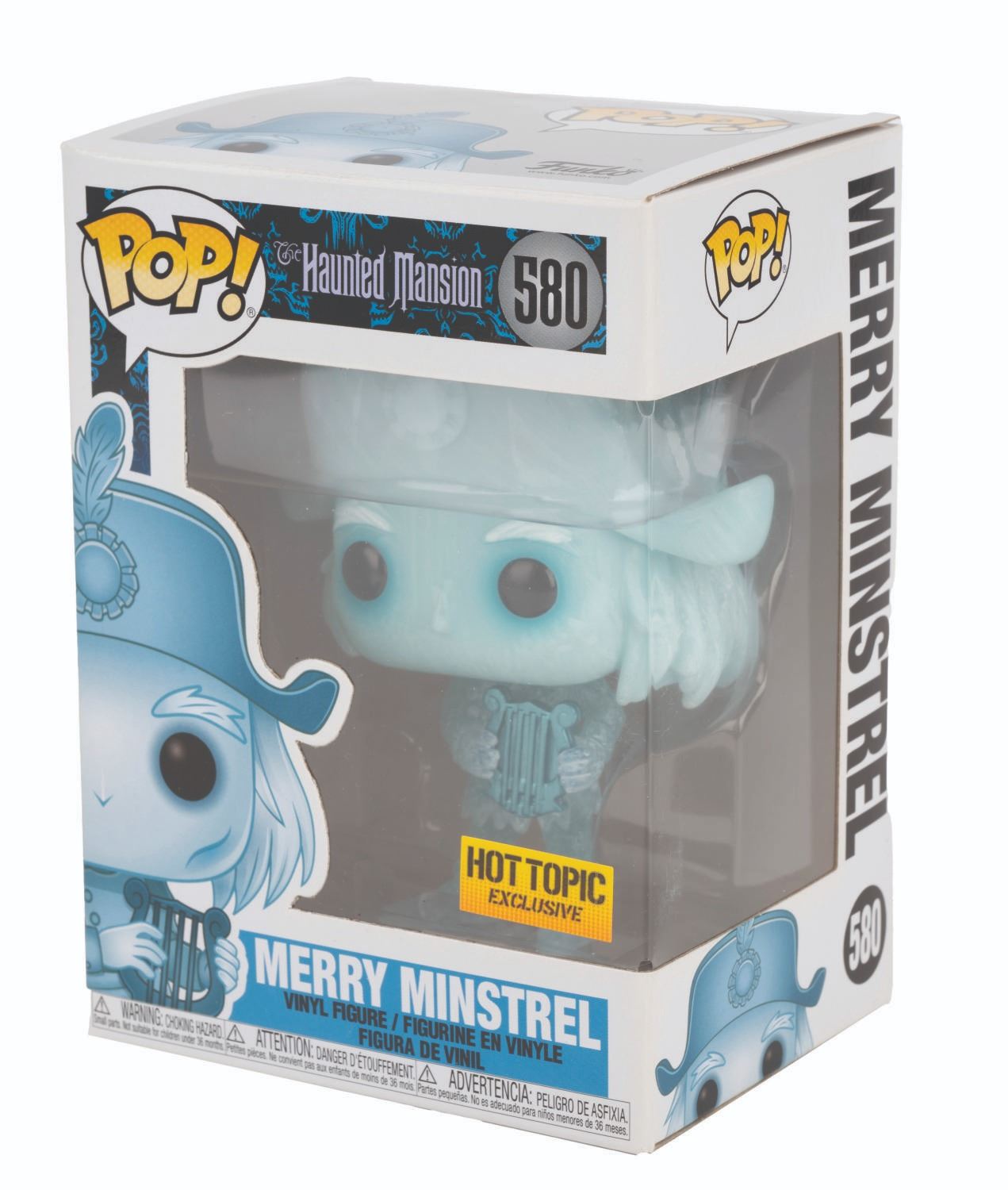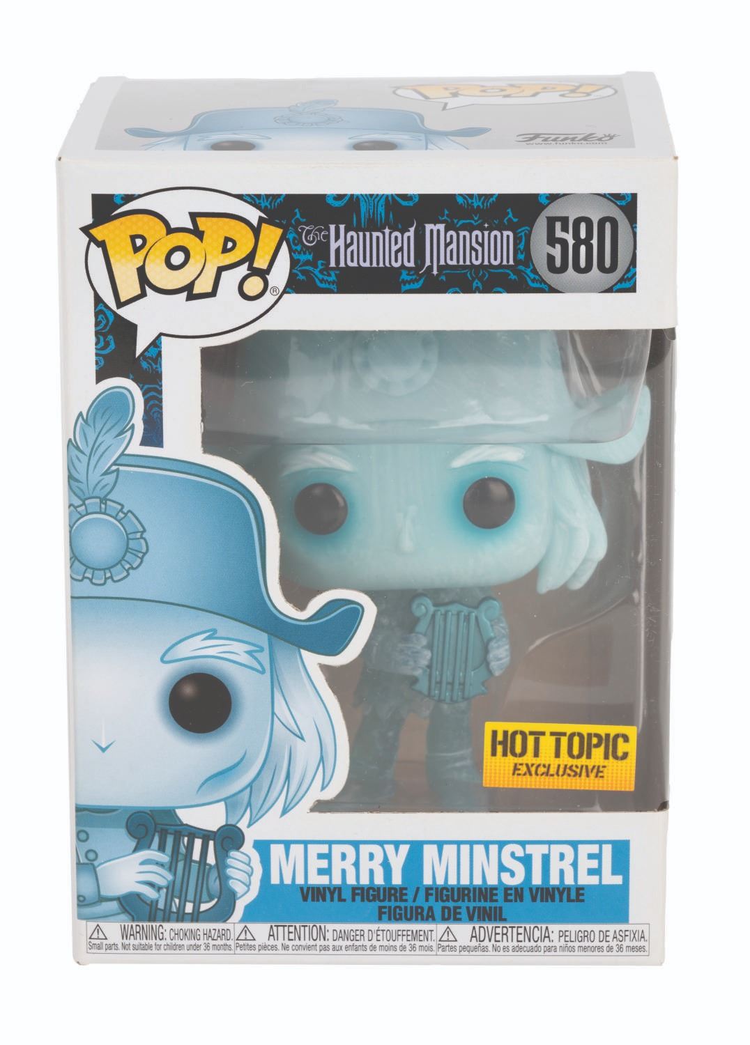 (Funko, 2019) A Merry Minstrel Funko Pop! released for The Haunted Mansion’s 50th anniversary and sold exclusively at Hot Topic. Measuring 3.5" x 4.25" in its original 3.5" x 4.5" x 6.25" tall box, the figure is in fine condition, while the box displays in very good condition with light wear, scratches, and scuffs.