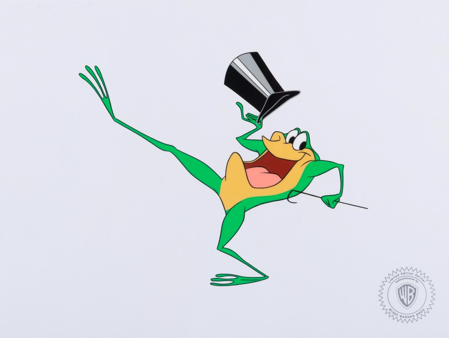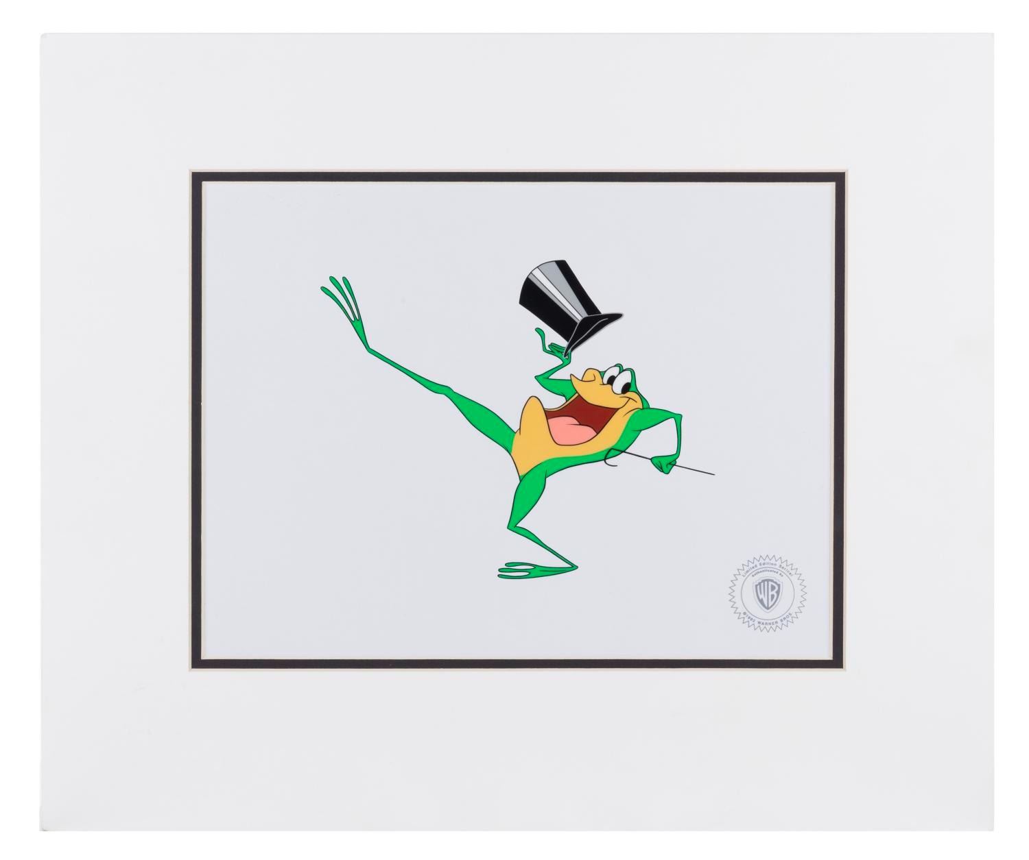 (Warner Bros., 1992) A limited edition sericel of Michigan J. Frog as he appeared in Chuck Jones’ “One Froggy Evening.” With a character image size measuring 6.5” x 8” on a 9.5” x 12.5” visible cel in a 16” x 19” matte, the sericel is in fine condition.