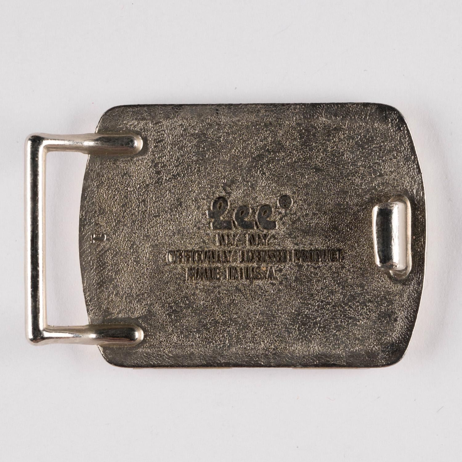 (Lee N.Y., 1970s-80s) A metal children’s Mickey Mouse belt buckle. Measuring 2.25" x 1.5" and 0.25" thick, the belt buckle is in very good condition with discoloration and fading from age, and the glass front of the buckle showing minor scratching and scuffing.