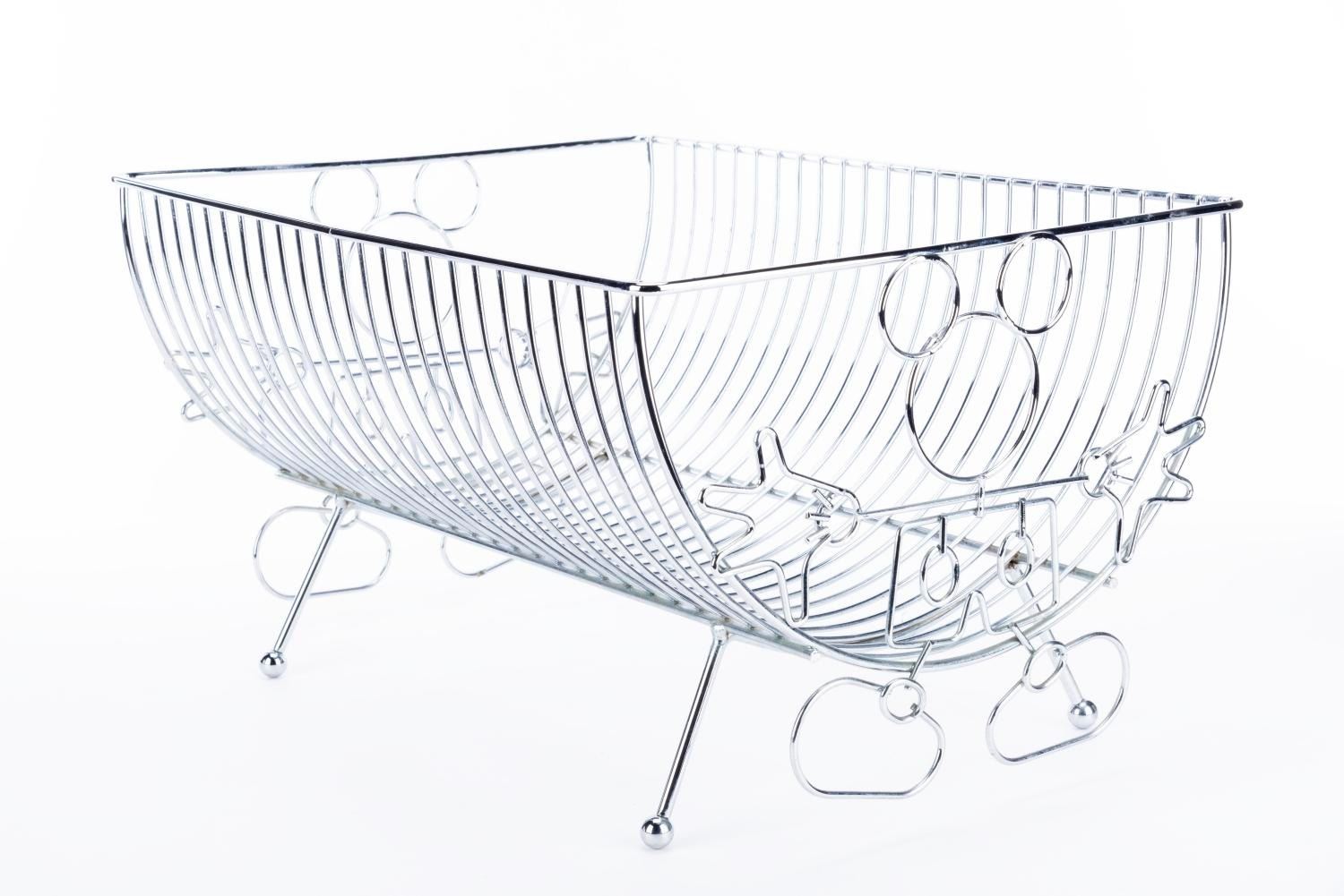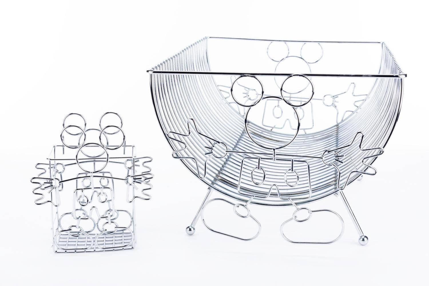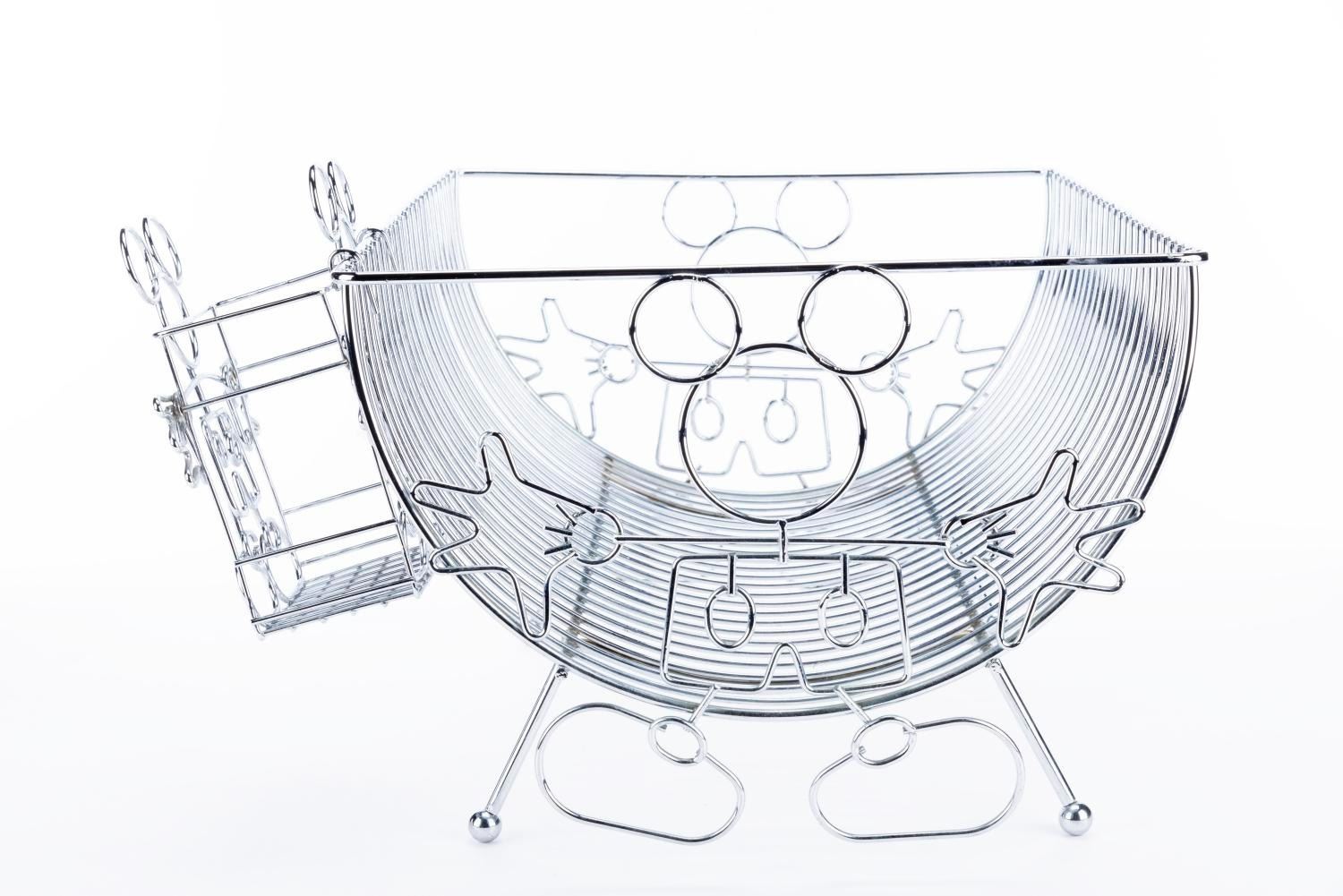 (Disney, 1980s-2000s) A silver wire Mickey Mouse dish drying rack and silverware caddy. Measuring 16” x 12” x 9” tall, the lot is in very good condition with light wear.