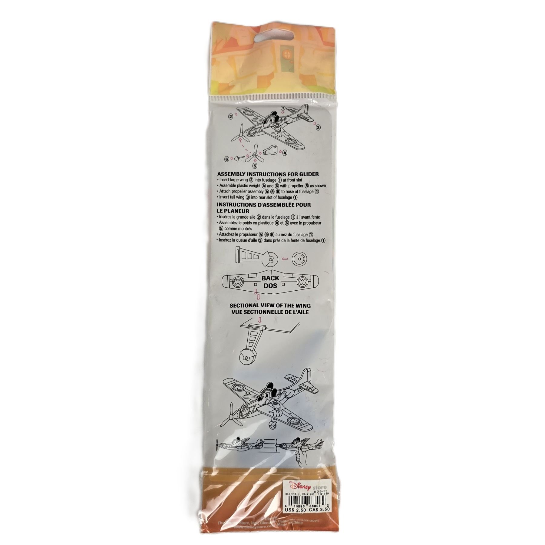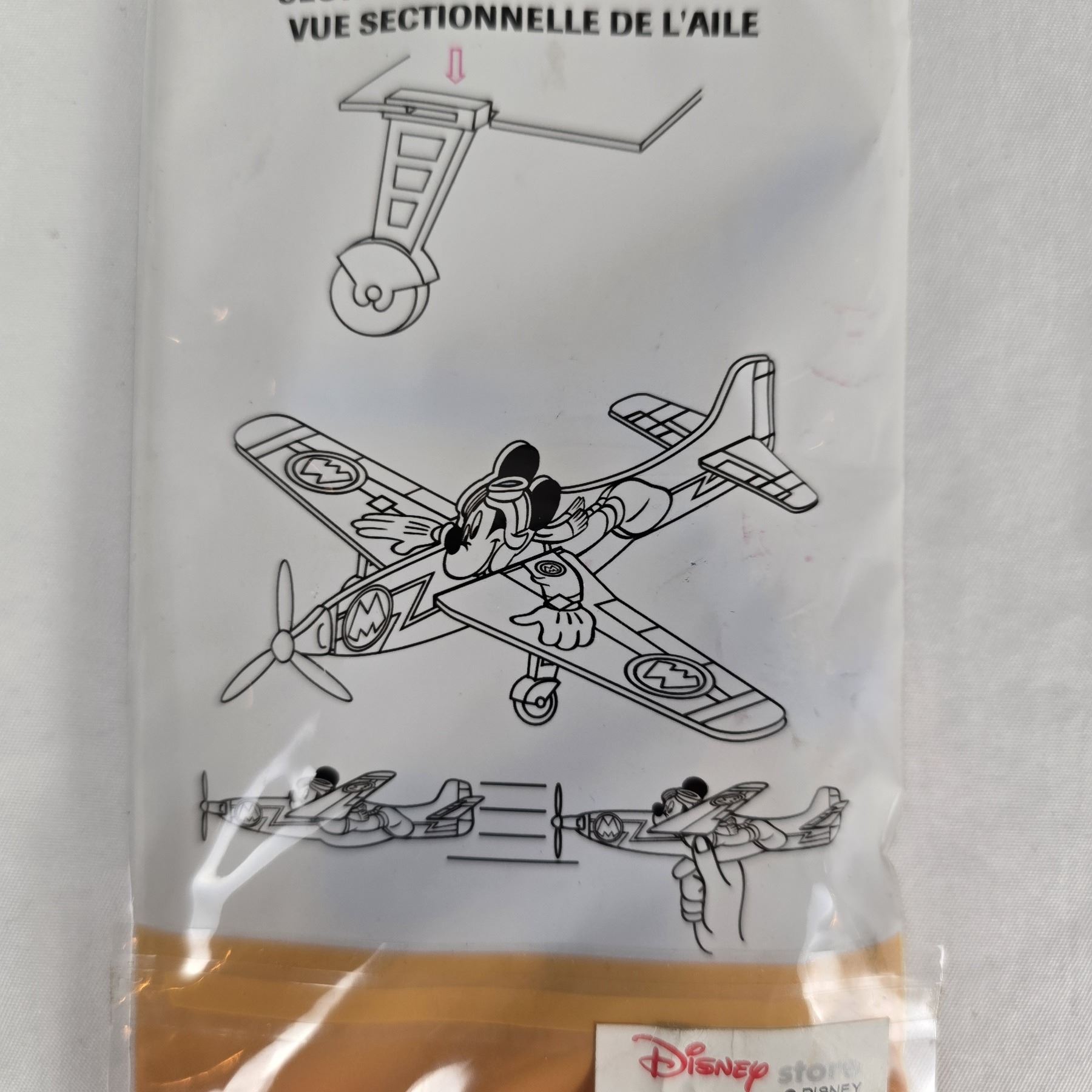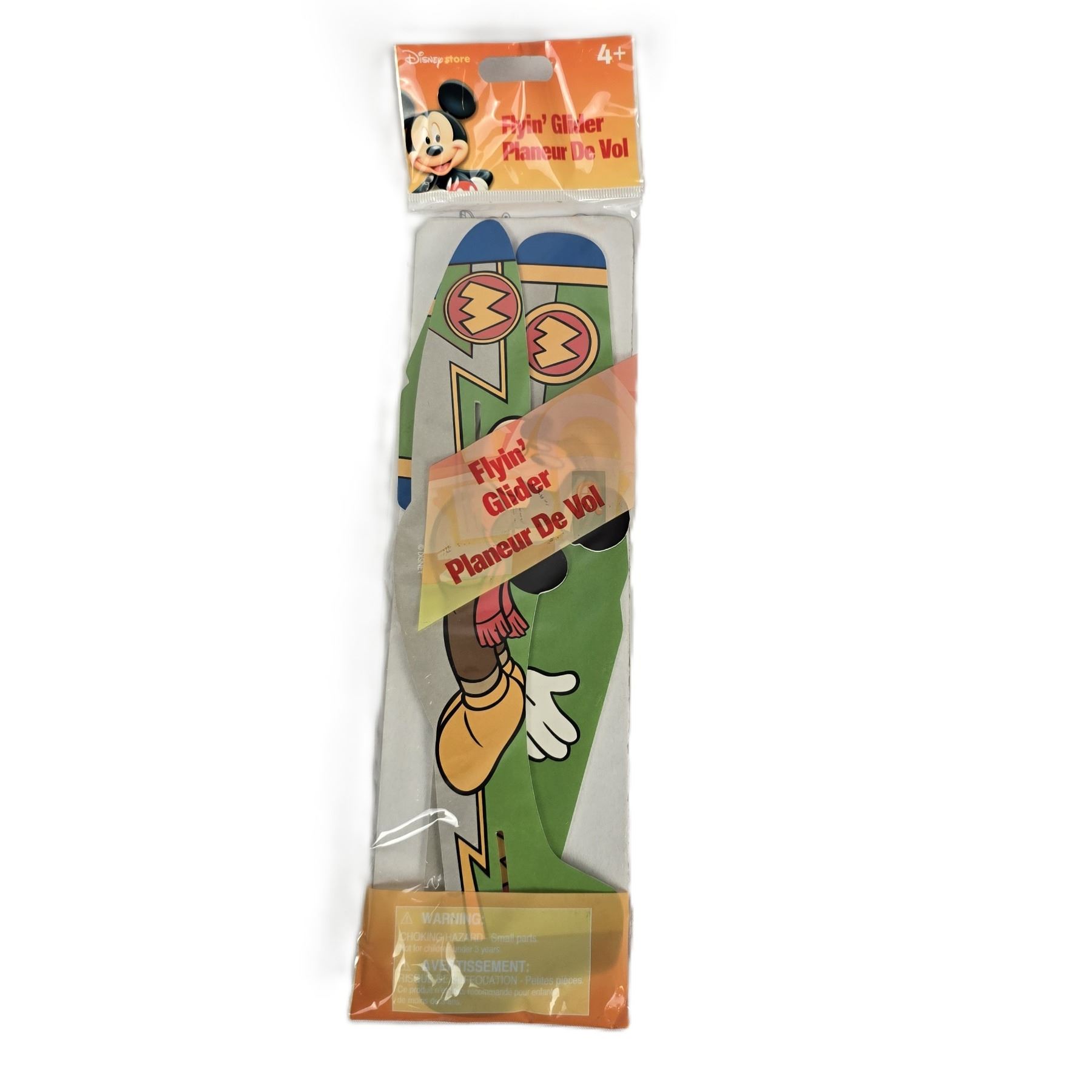 (Disney Store) This is a vintage Mickey Mouse glider featuring Mickey Mouse. It is new in package. It is flat and measures 3.5" x 13" and weighs 0.5 oz.