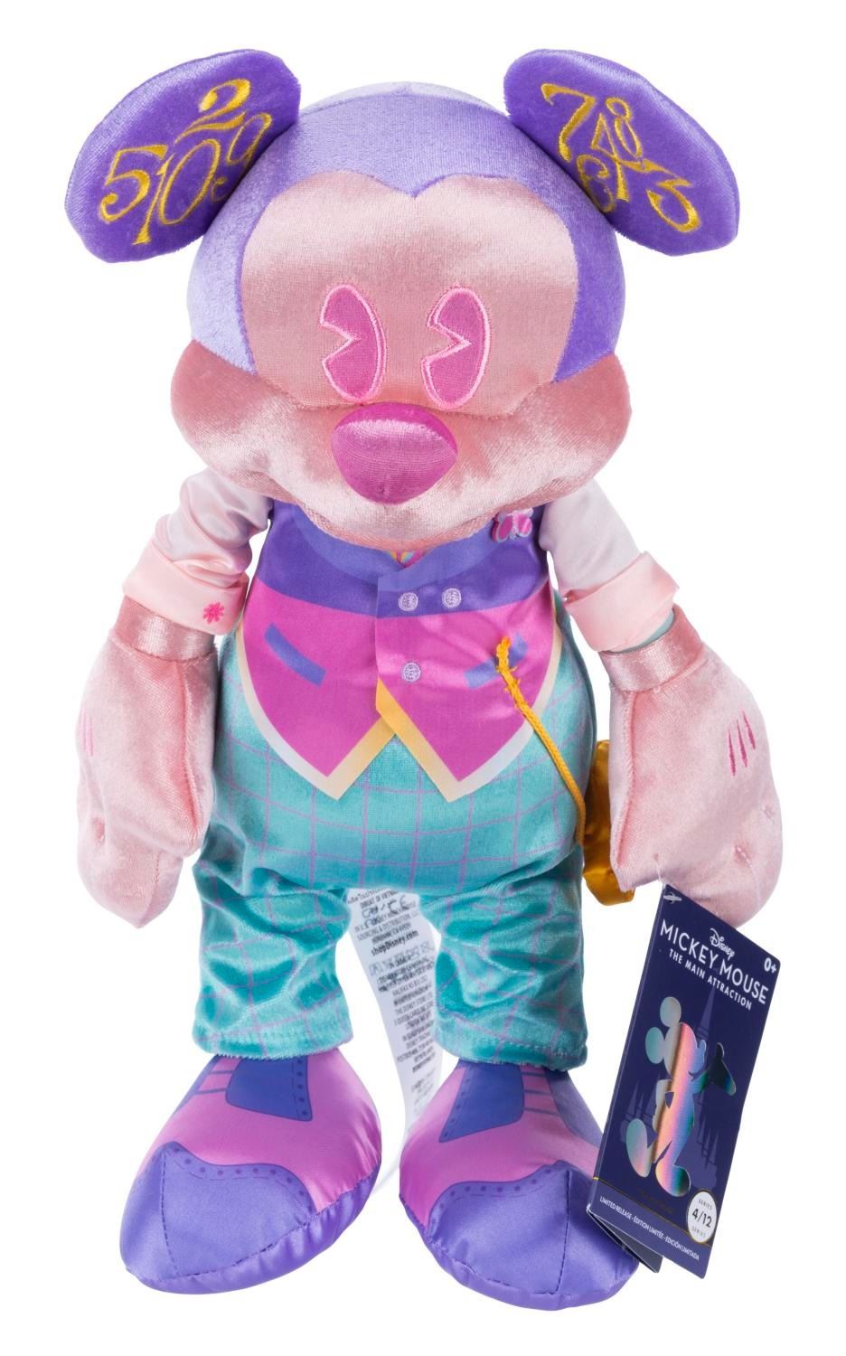 (Disney, 2022) An It’s a Small World-themed Mickey Mouse plush. This Mickey was released in Series 4 of the Mickey Mouse: The Main Attraction merchandise line celebrating Walt Disney World’s 50th anniversary. Measuring 9” x 6.5” x 17” tall with its original tags intact, the plush is in fine condition.