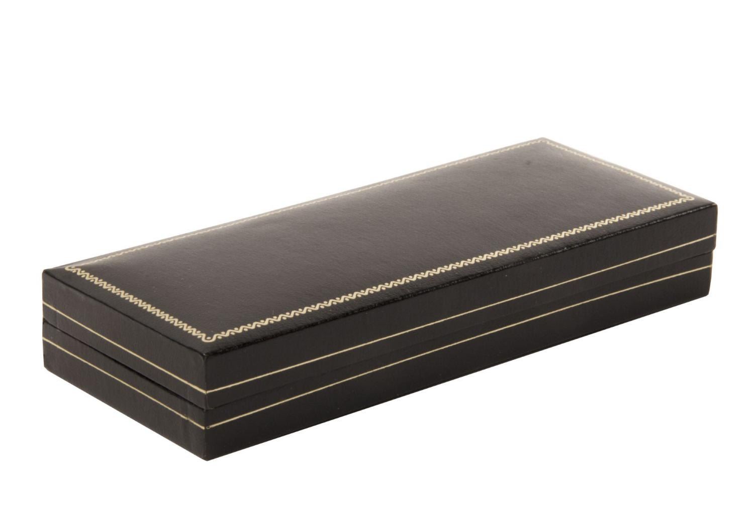 (Disney, 1990s) A silver and wood pen featuring Mickey Mouse at the tip and Mickey-ear emblems throughout. The center of the pen has a Disney copyright and is marked as 925 silver. Measuring 5.5" long the pen is in very good condition with tarnished silver and minor wear, and comes in the original Displayed black clamshell style case. The ink cartridge may need to be replaced.