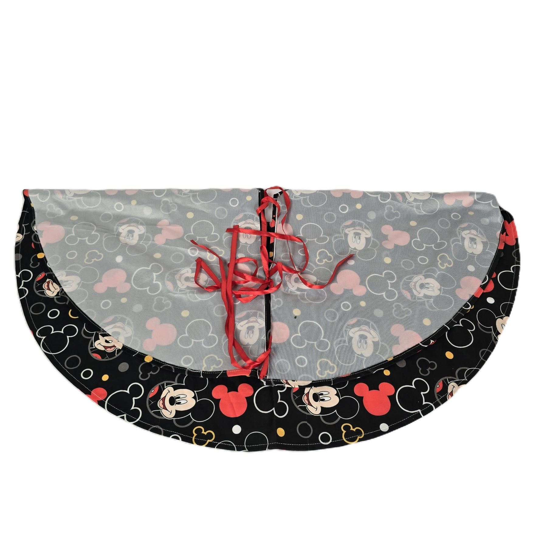 This is a black tree skirt featuring Mickey Mouse, Icon Mickey Heads and circles all over. It measures 36" in diameter and weighs 5 oz.