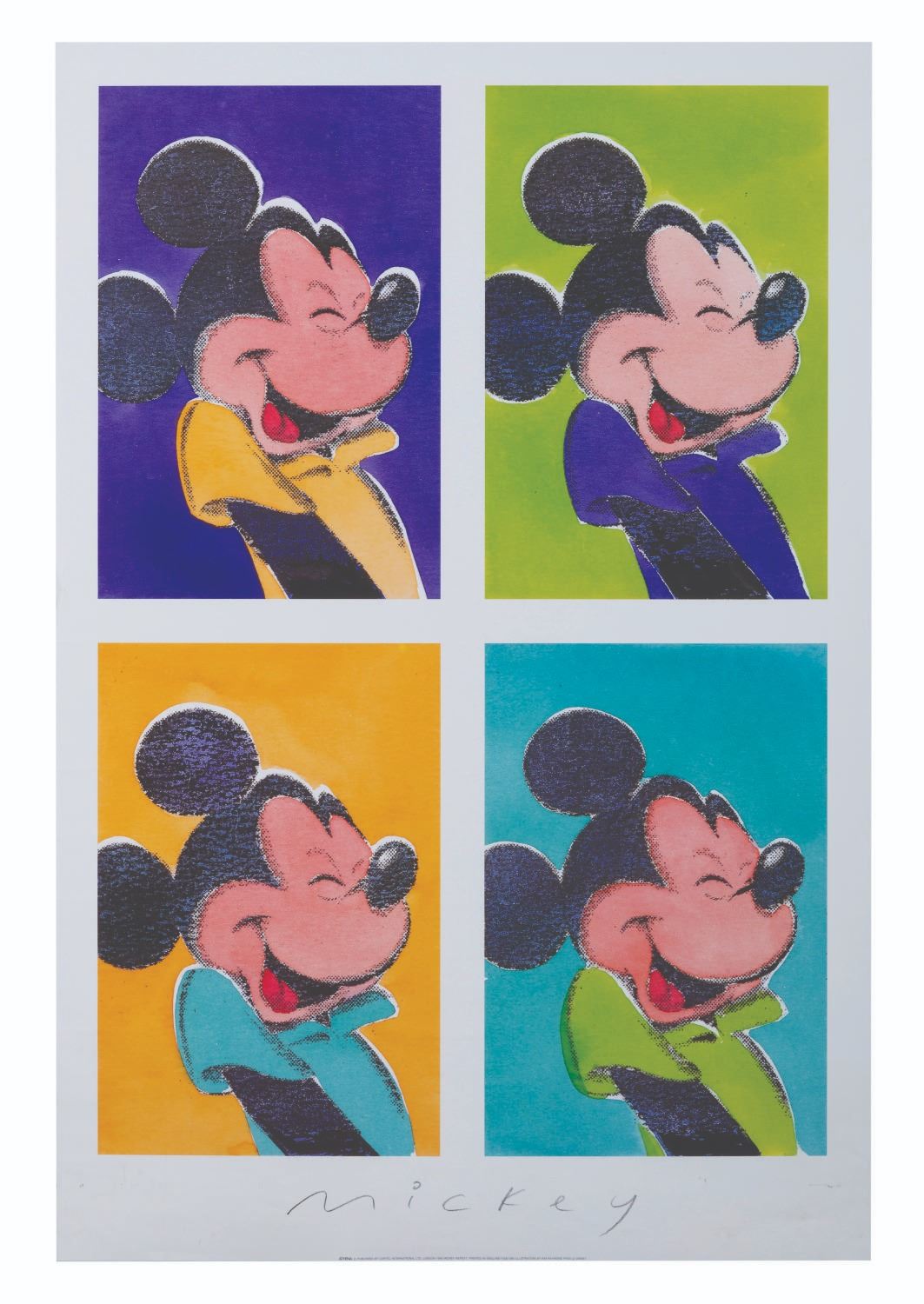 (Athena/Disney, 1995) A poster titled "Mickey repeat" printed in London by Athena and attributed to artist Kim Raymond. Measuring 23.5"x35", the poster is in good condition, with light wear from handling, and some small smudges in the bottom title area.