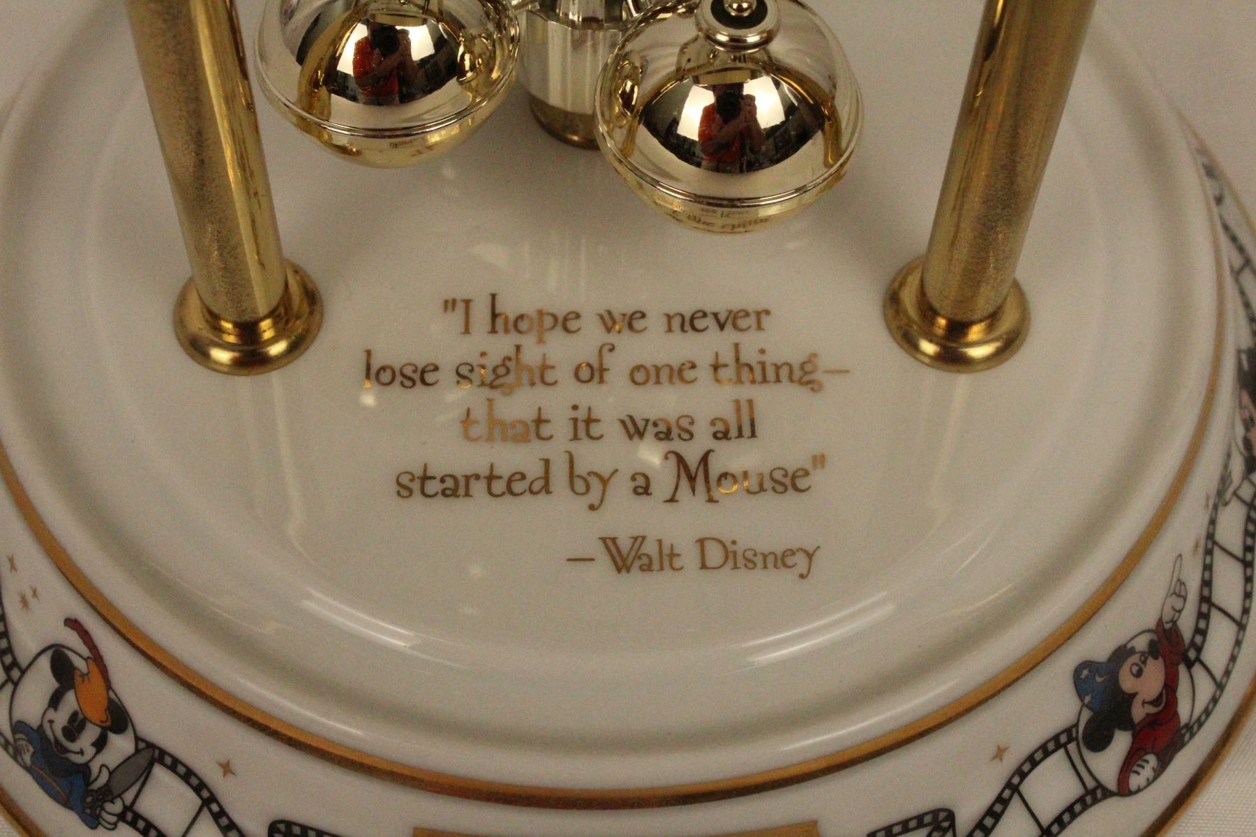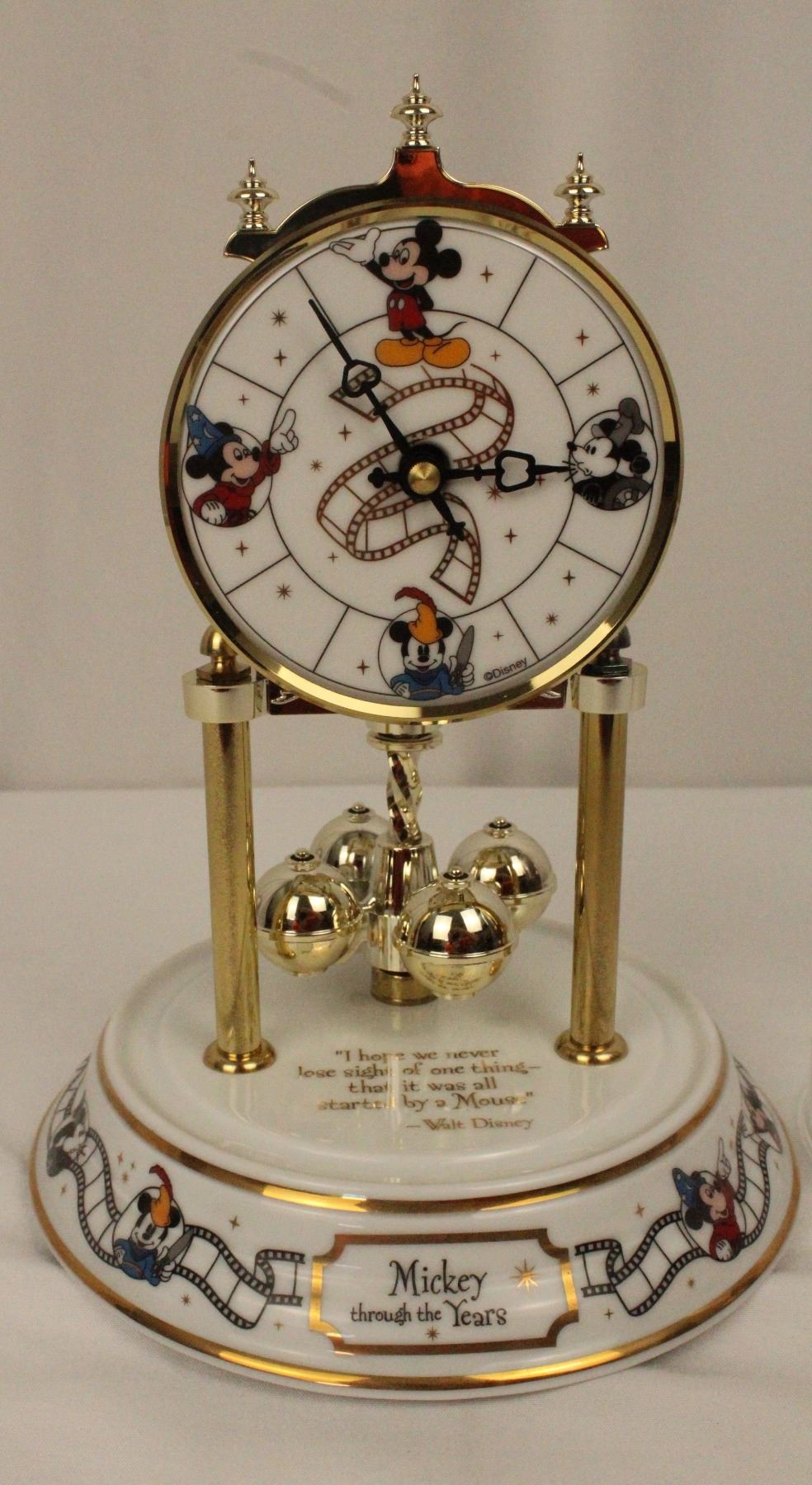 (Disney, 1998) This is a beautiful anniversary clock celebrating Mickey Mouse Through The Years. The ceramic base and clock face features four classic Mickey Mouse characters including classic Mickey, Steamboat Willie, The Brave Little Tailor and Sorcerer Mickey. The base has the famous Walt Disney quote “I Hope we never lose sight of one thing – that it was all started by a Mouse.” It Measures ~9.5” tall and is in excellent condition.