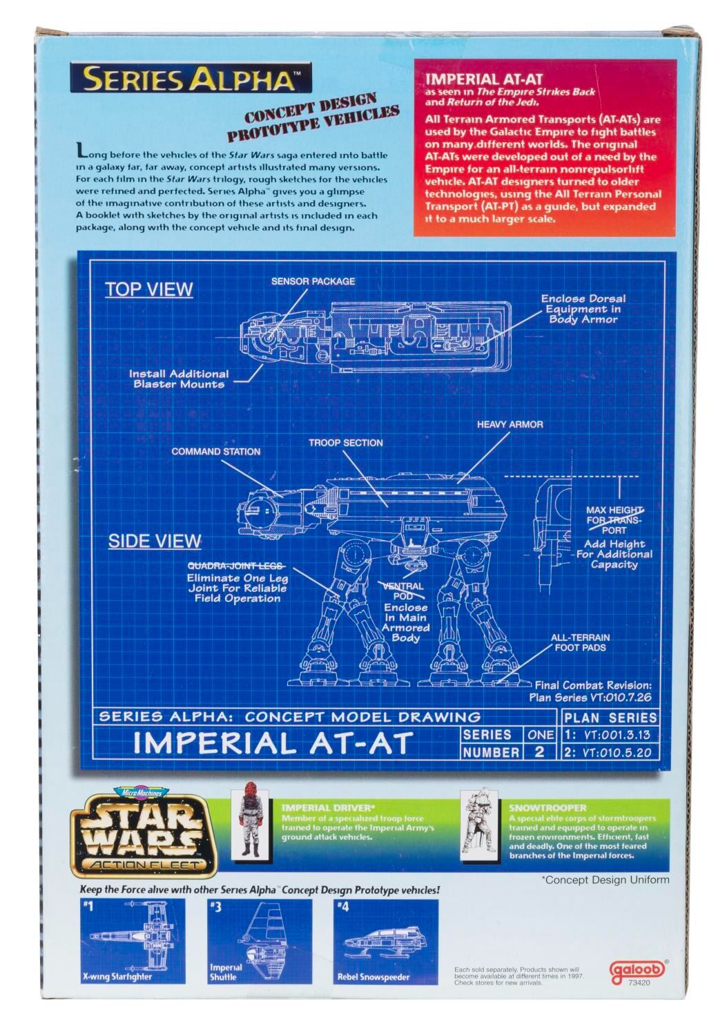 (Galoob, 1997) A Micro Machines Series Alpha Imperial AT-AT set, with toys based on the original concept and final design of the Imperial Walkers, first seen in “The Empire Strikes Back.” Standing from 2.5” to 5.5” tall, the toys are in fine condition, sealed within the original very good condition box.